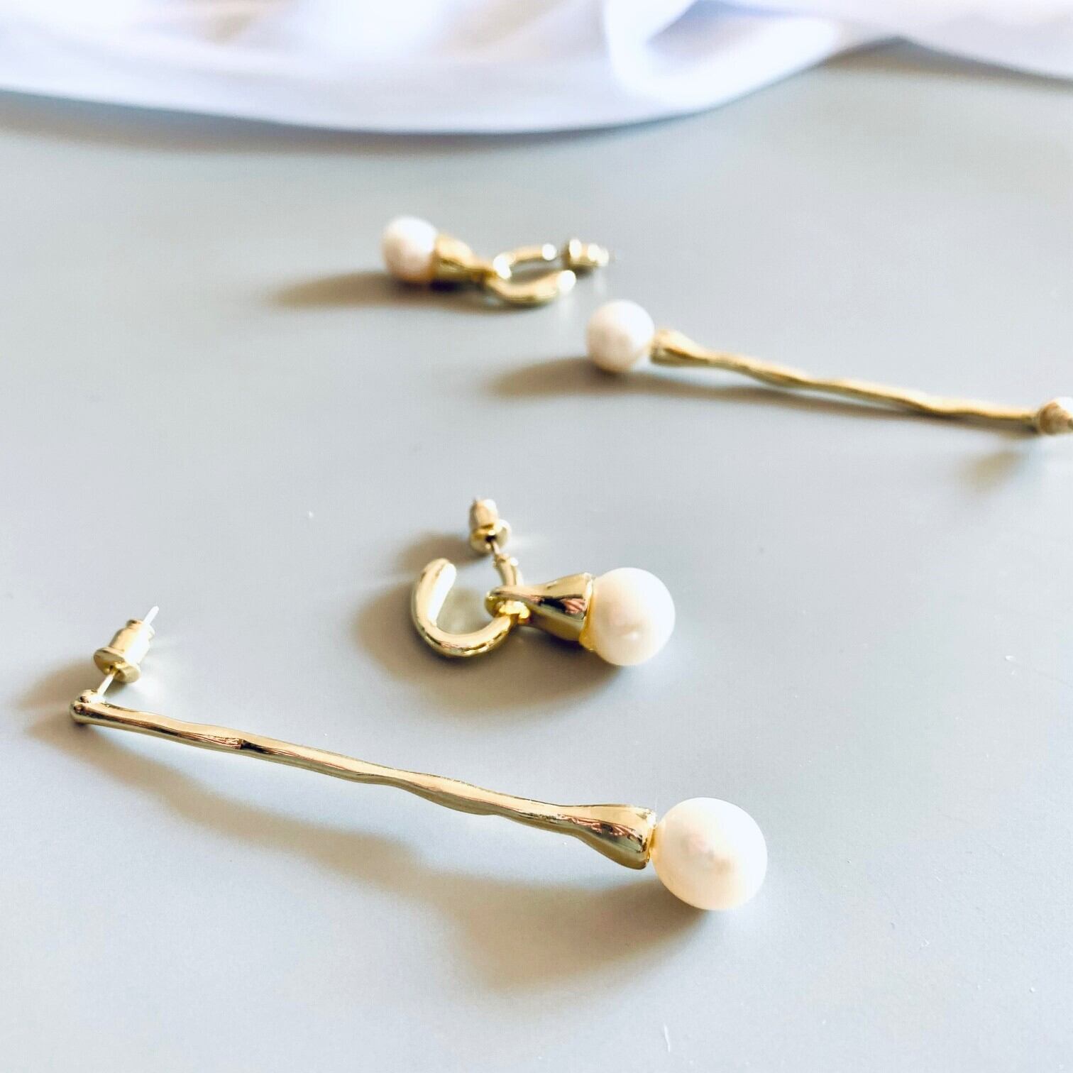 パールの上品さとデザイン性のあるアシンメトリーは、特別な日はもちろんデイリーコーデまで幅広く活躍するアイテムです。
