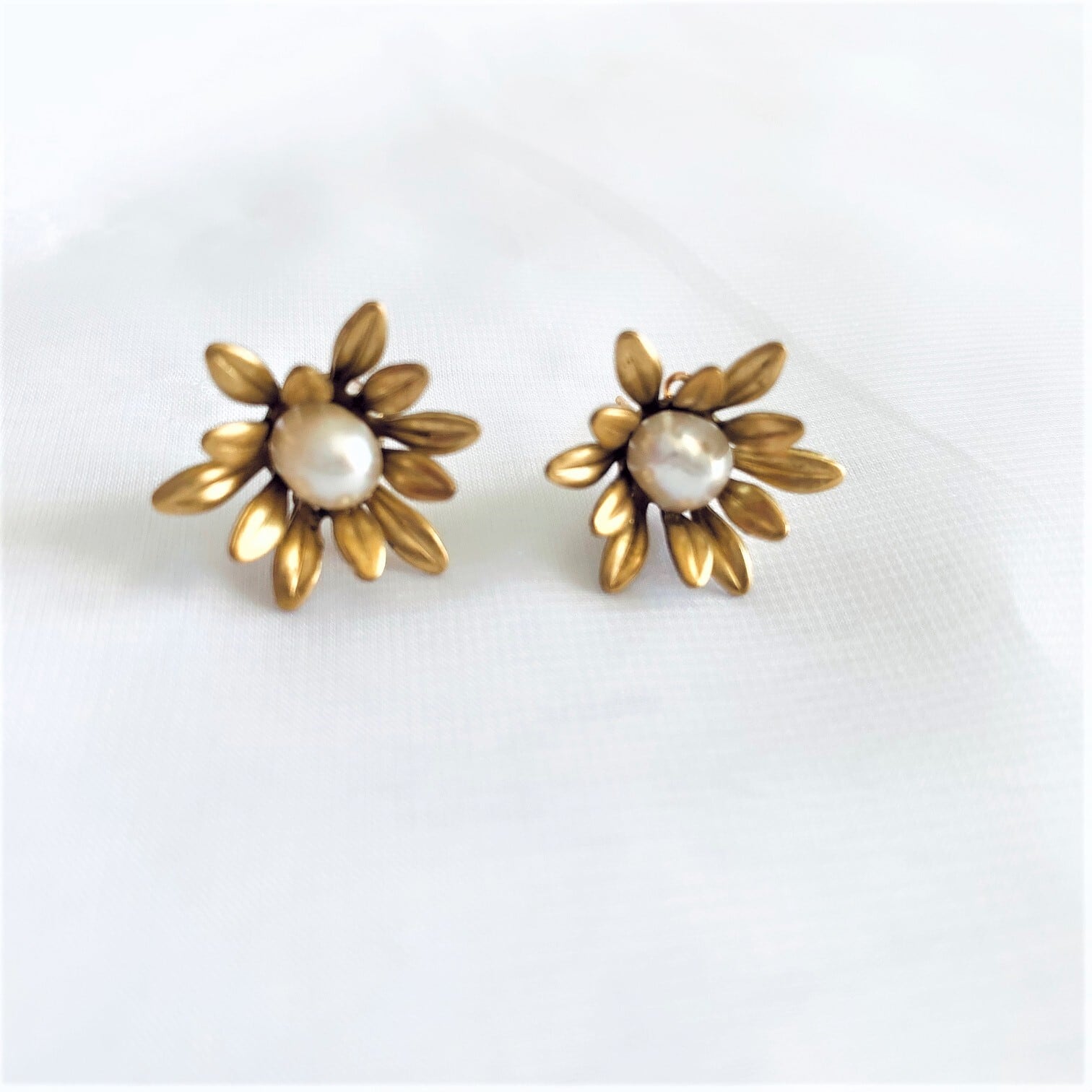 つぼみからゆっくり花びらが開く瞬間のようなデザインの耳飾り。