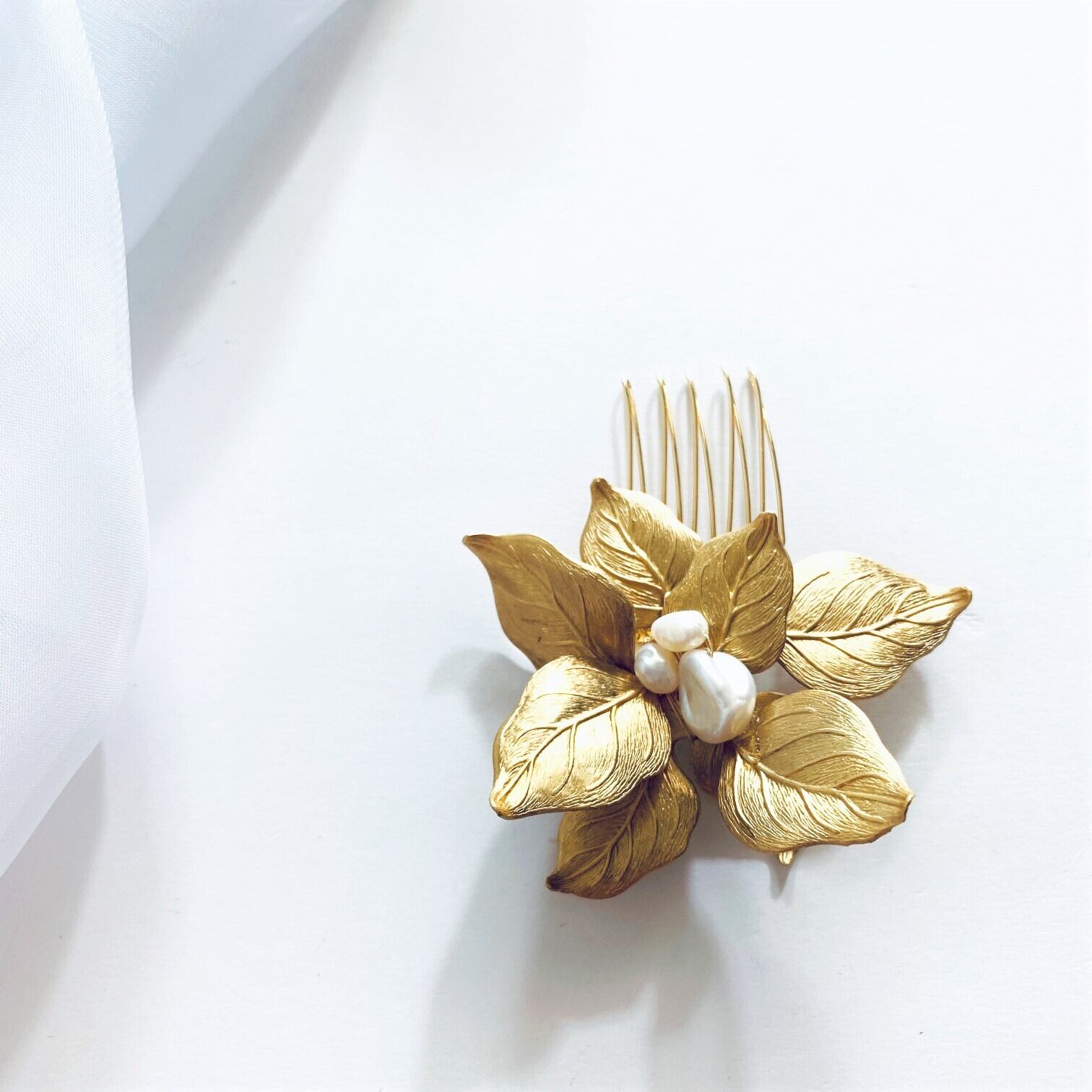 ヴィンテージ感のあるリーフが重なり合った立体的なデザインのヘアコーム。