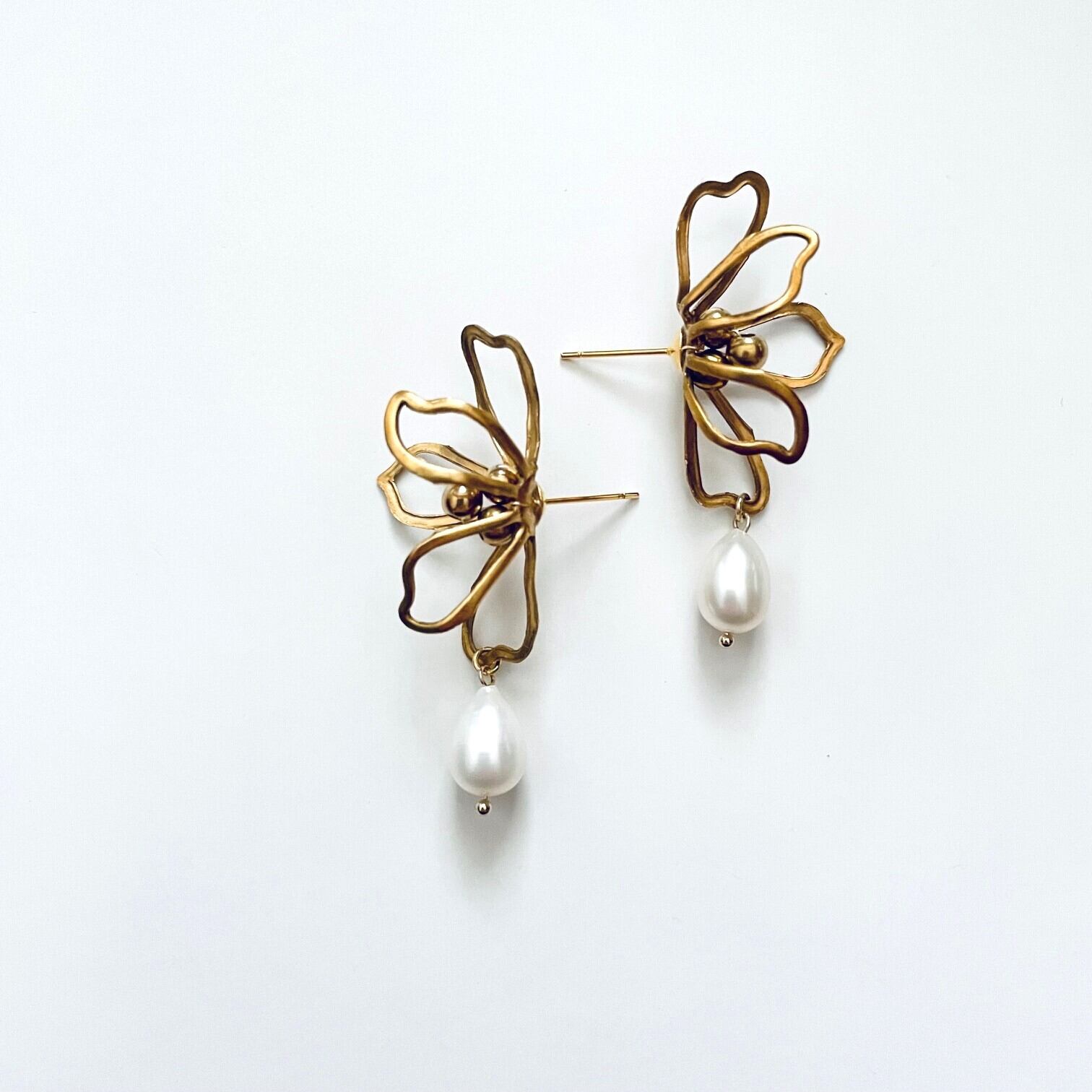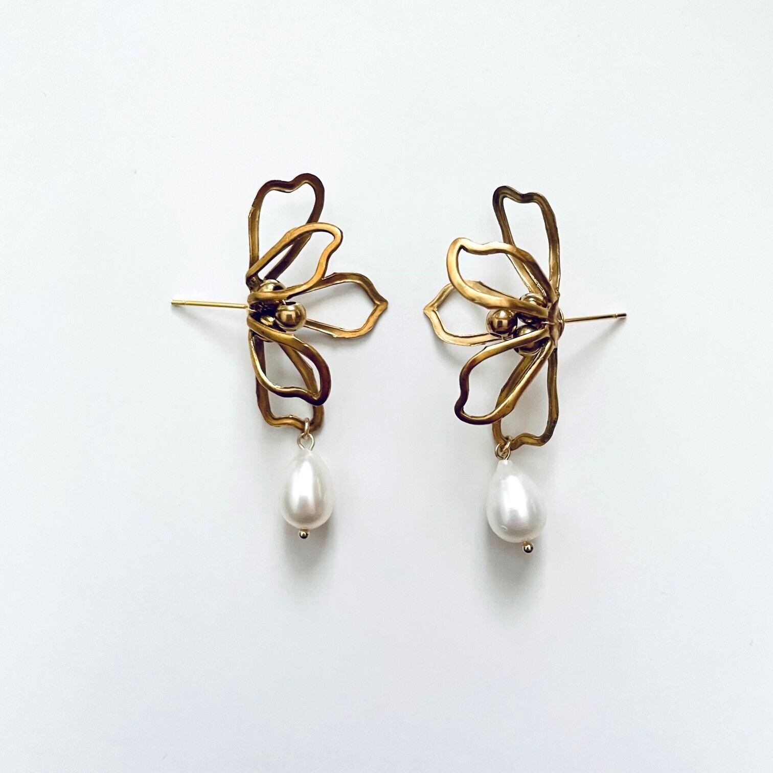 型抜きフラワーパーツで羽ばたく蝶々のような繊細で可憐なデザインのピアス。