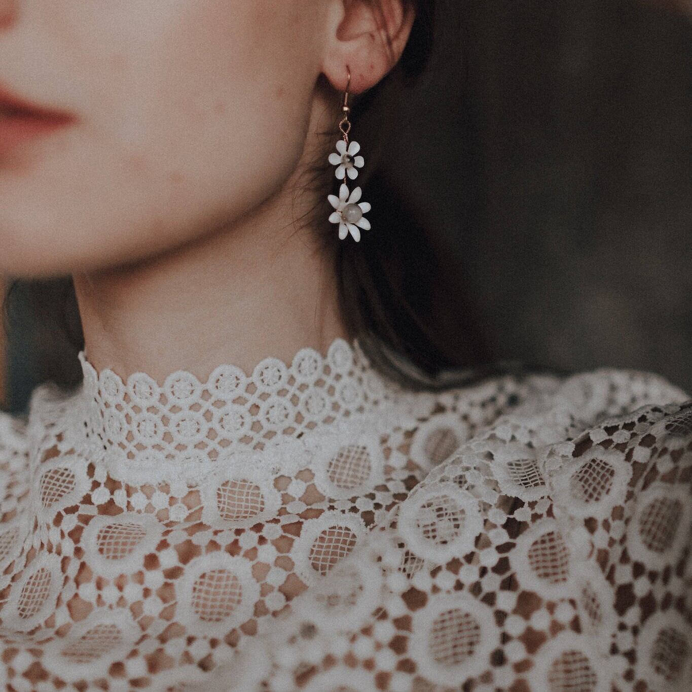 可憐なデイジーが耳元を可愛らしく彩ってくれるピアスです。