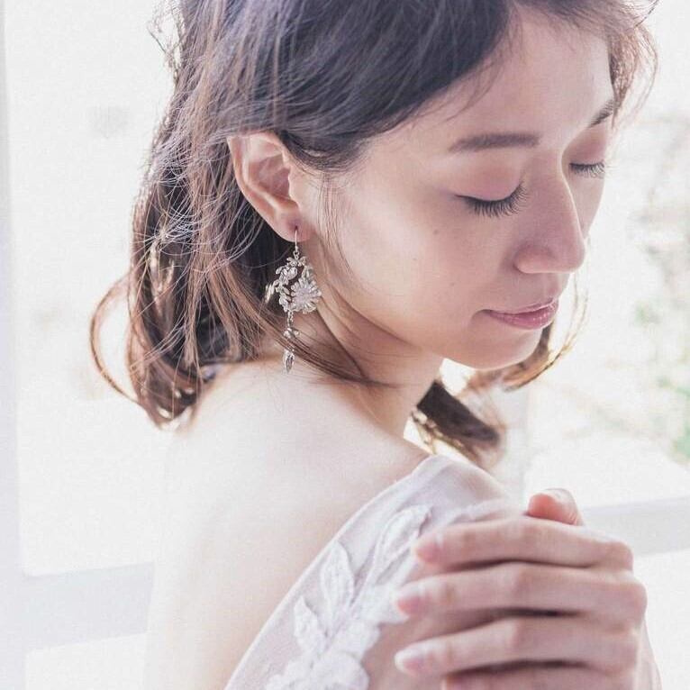 フープ状にしたお花や植物のモチーフと、上質なスワロフスキーが揺らめくデザイン。