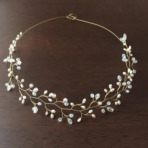 小さなパールとクリスタルビーズをたっぷり使用したヘアピース。