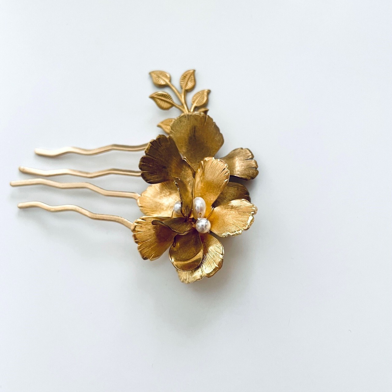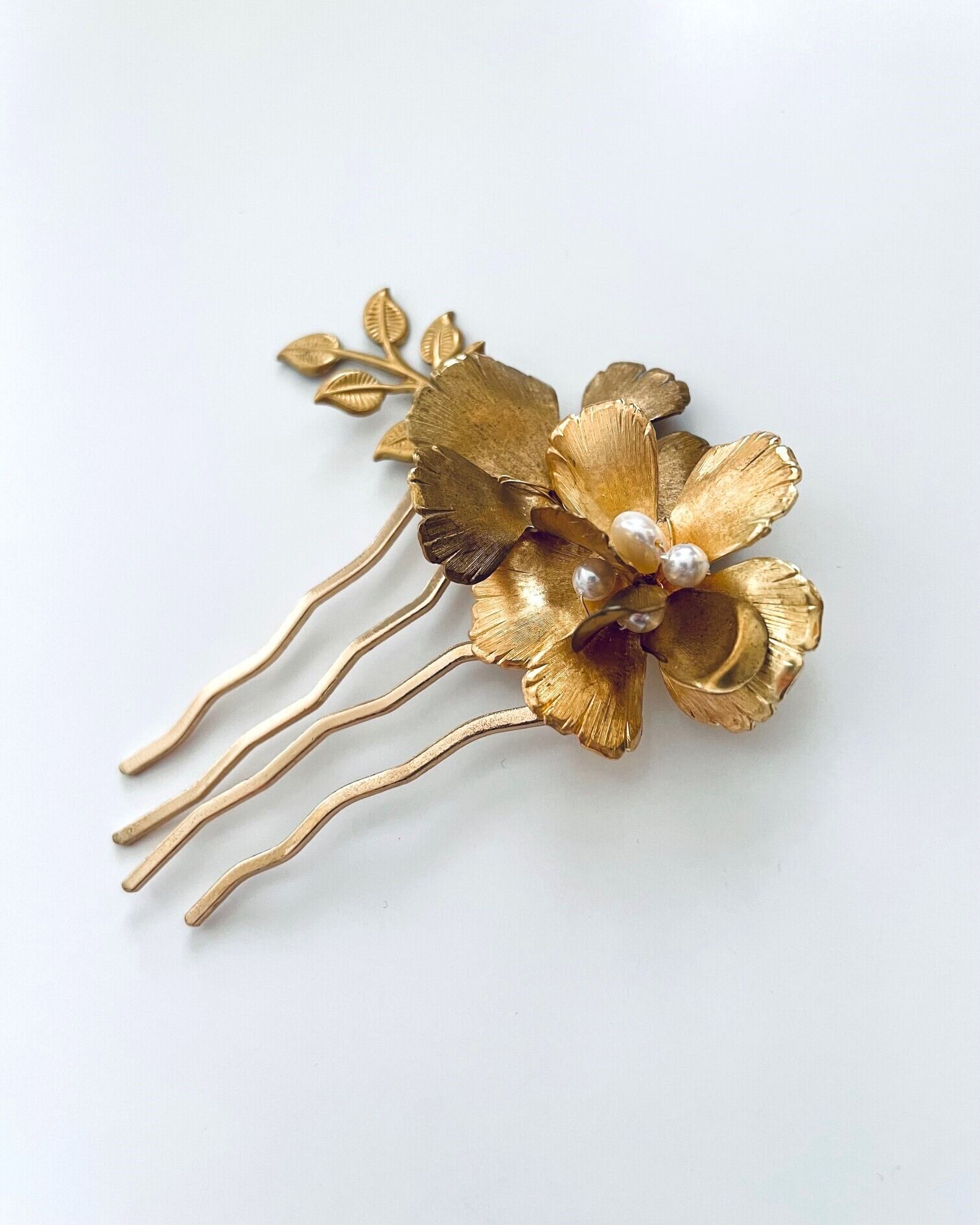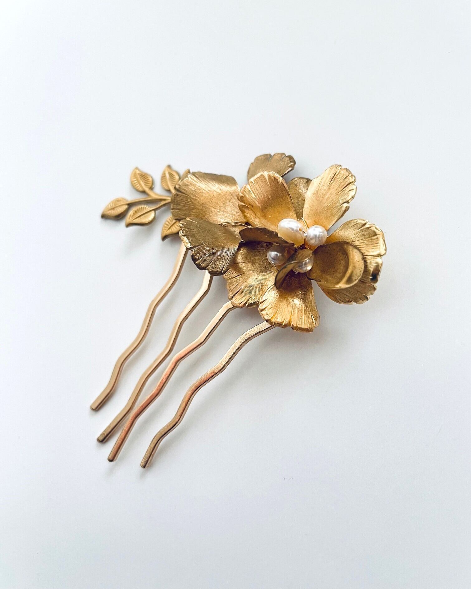 真鍮フラワーとリーフが美しくアクセントを添えてくれるボタニカルガーデン ヘアコーム。