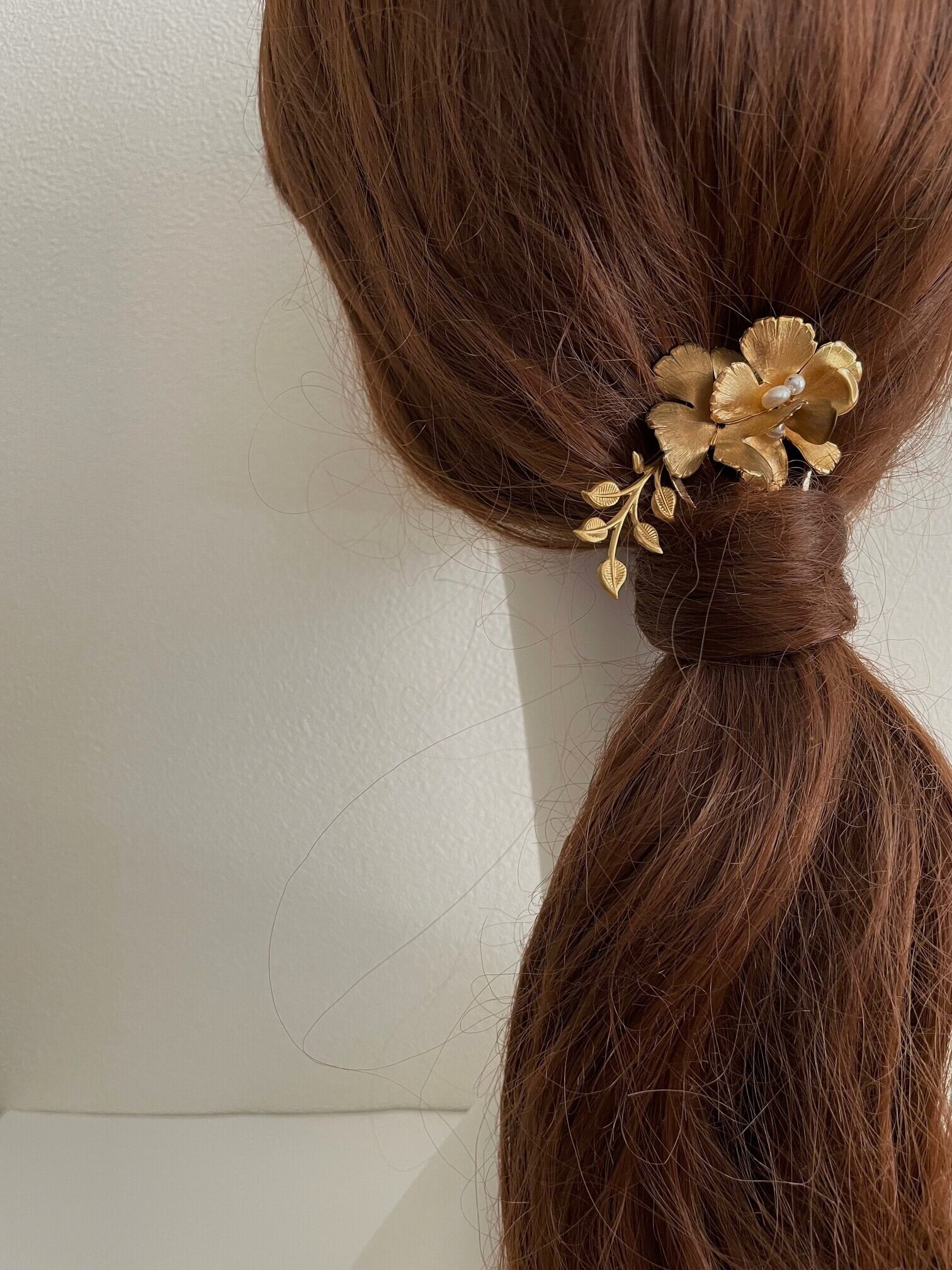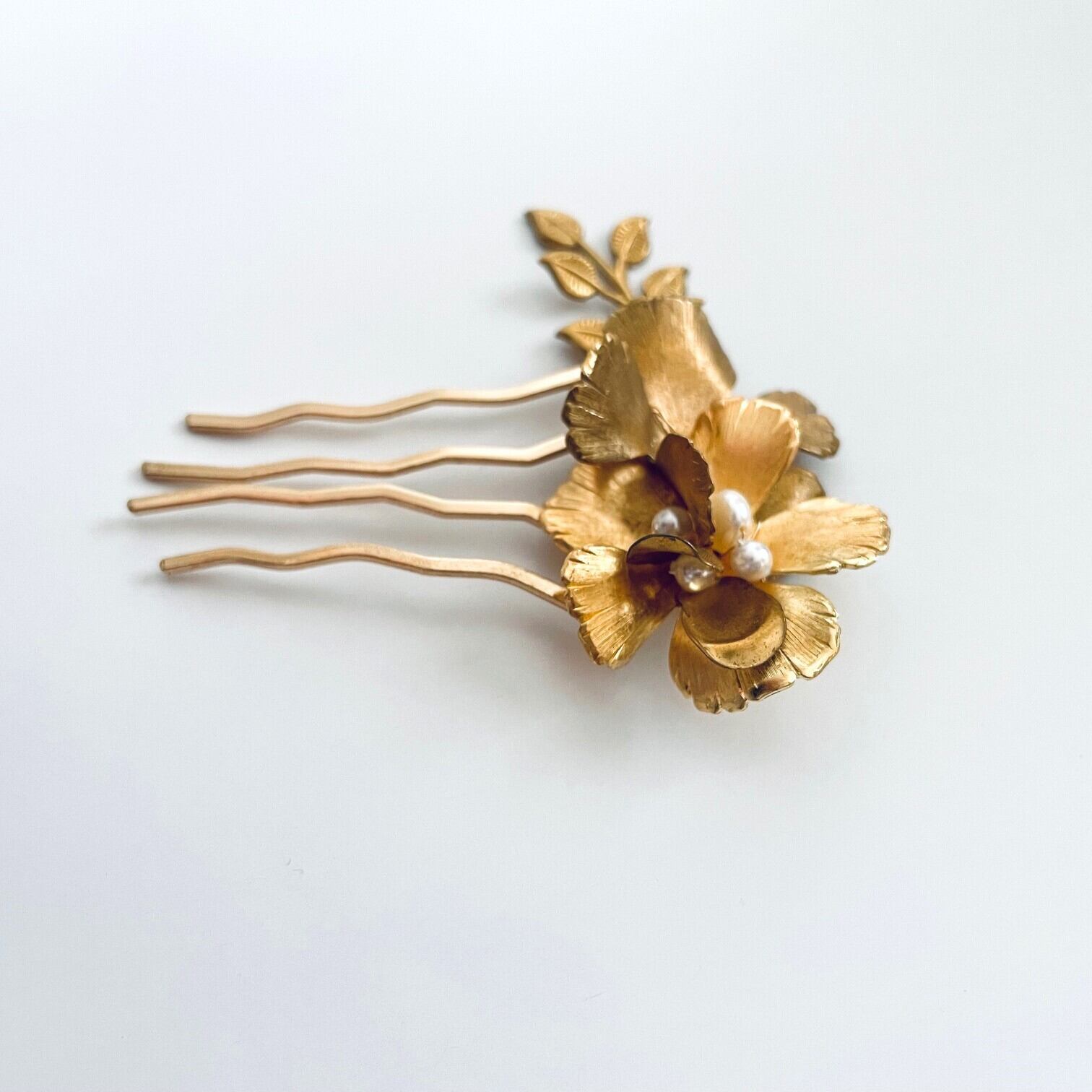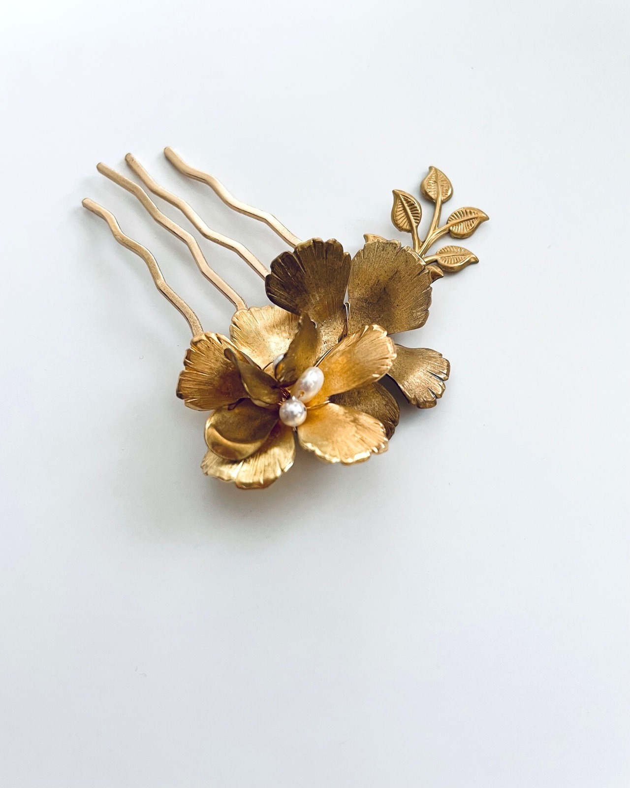 真鍮フラワーとリーフが美しくアクセントを添えてくれるボタニカルガーデン ヘアコーム。