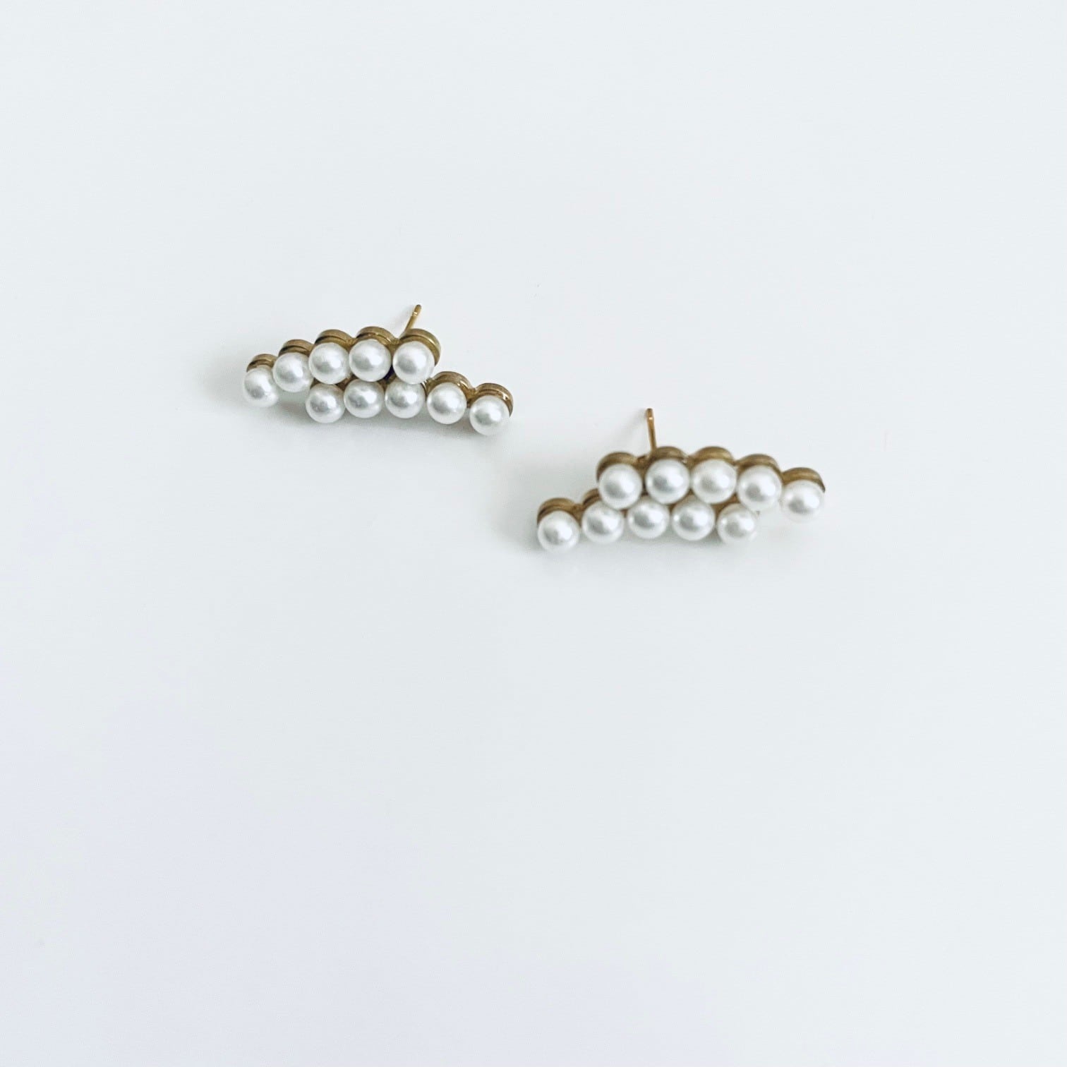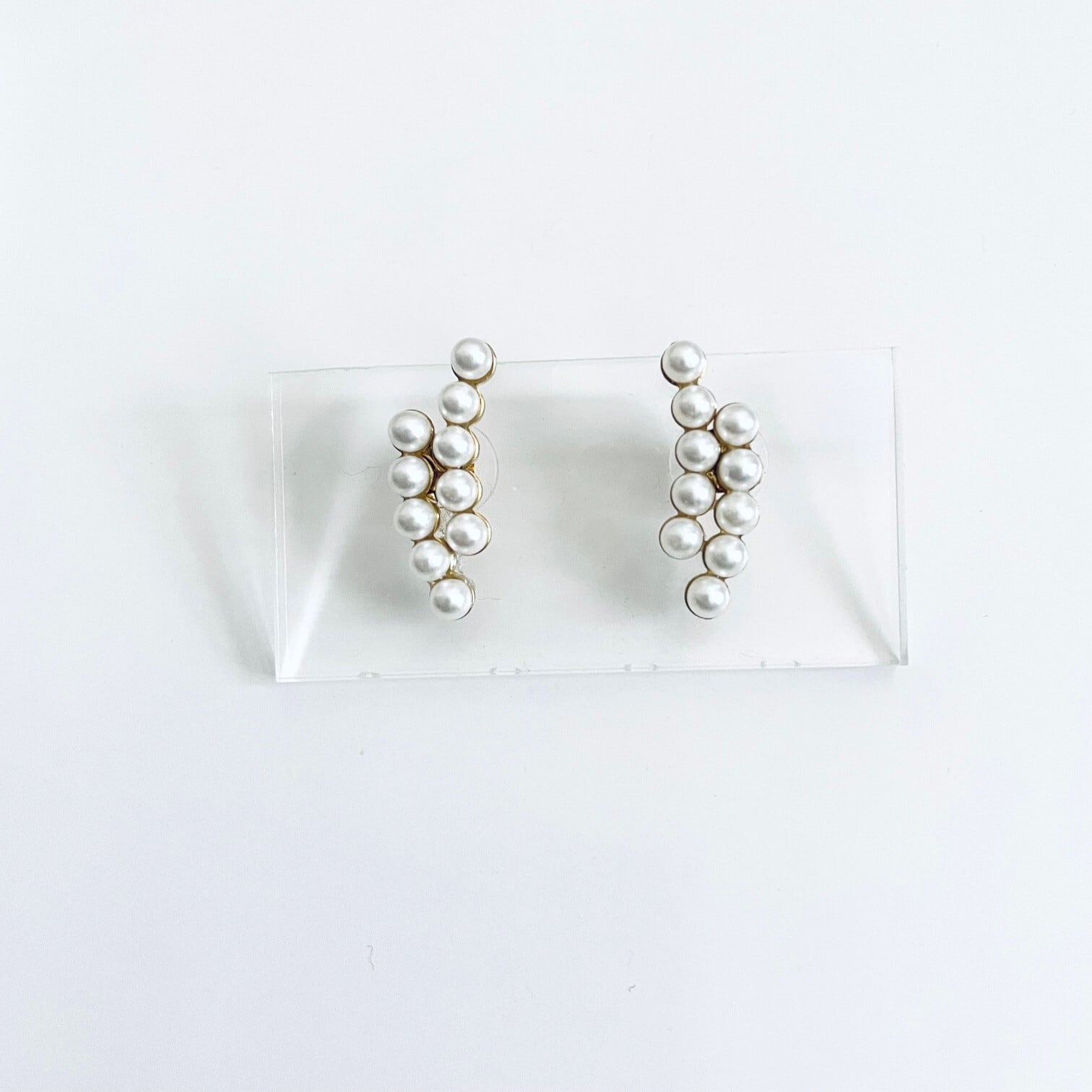 繊細に連なる小粒のパールが、耳元に上品な華やかさを添えてくれるピアス。