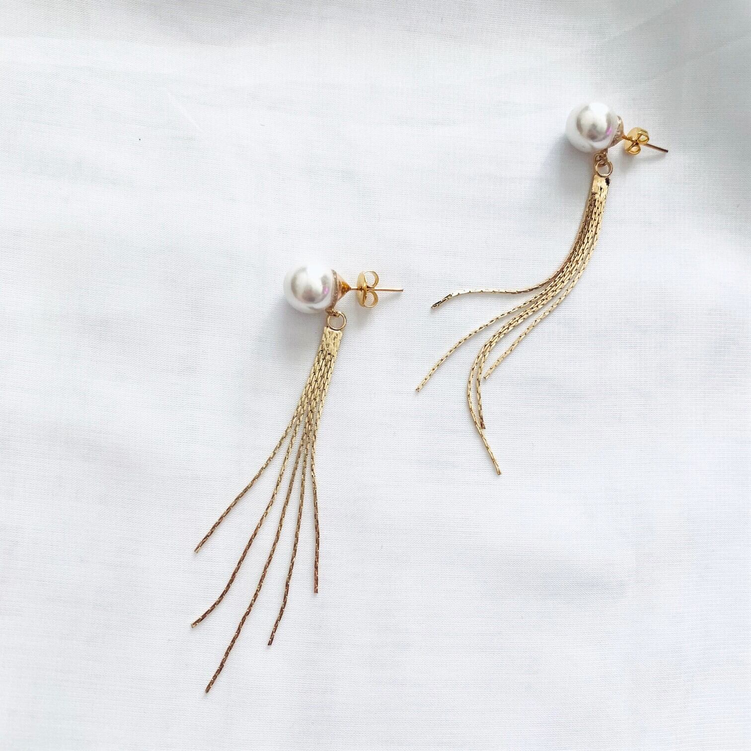 タッセルのようなチェーンが華やかさを演出してくれるピアスです。