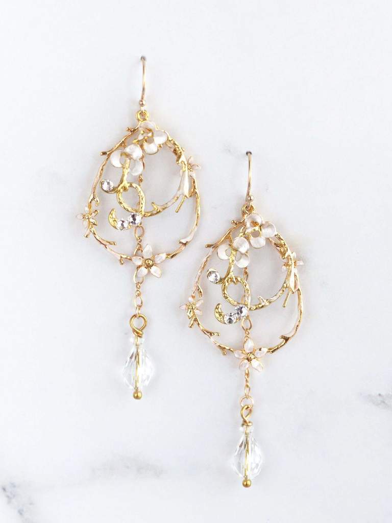 長さを出したチェーンにはクリスタルが揺れ、繊細で美しい耳元を演出してくれます。