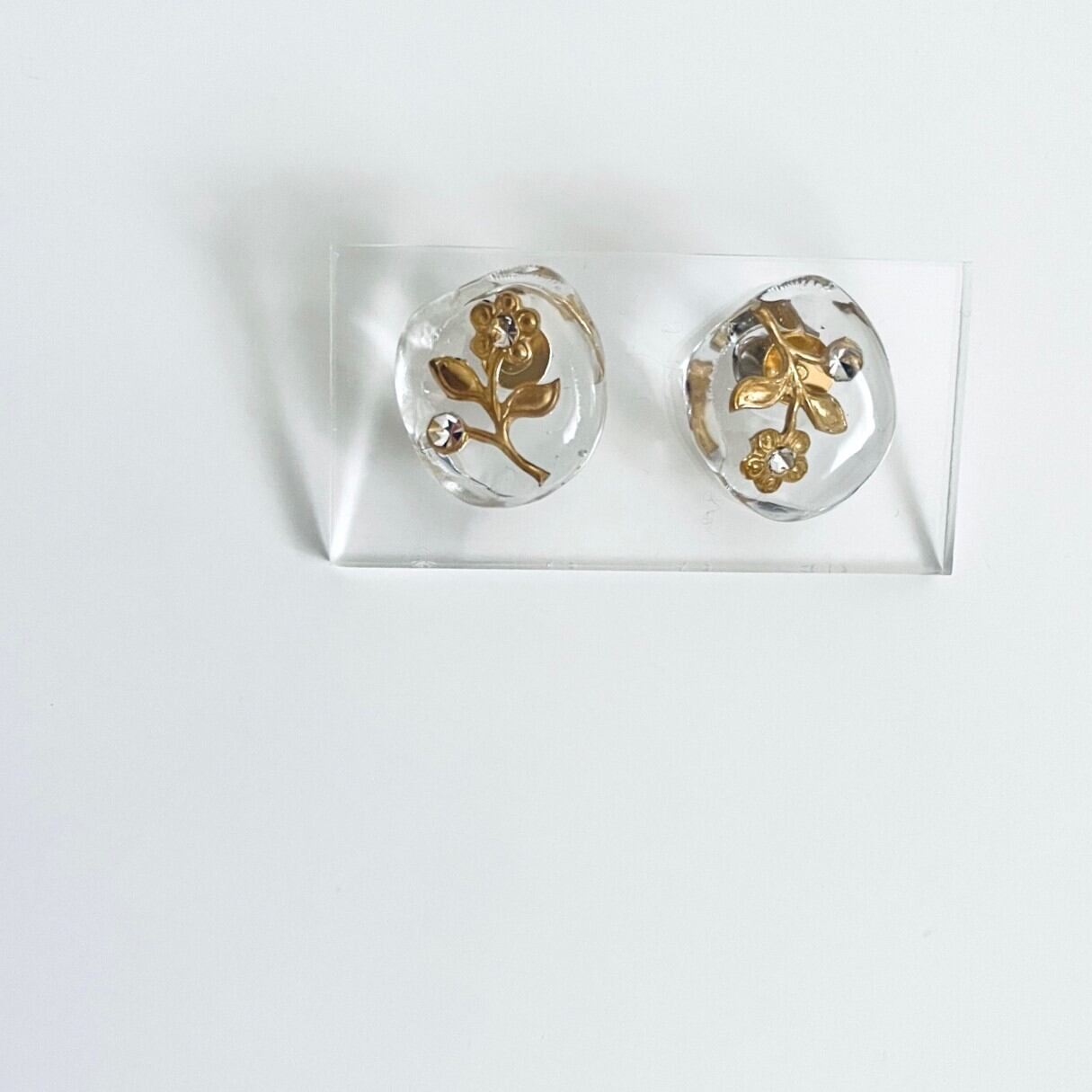 真鍮のアンティーク小花を樹脂に閉じ込めた「アンティーク小花のクリアピアス」