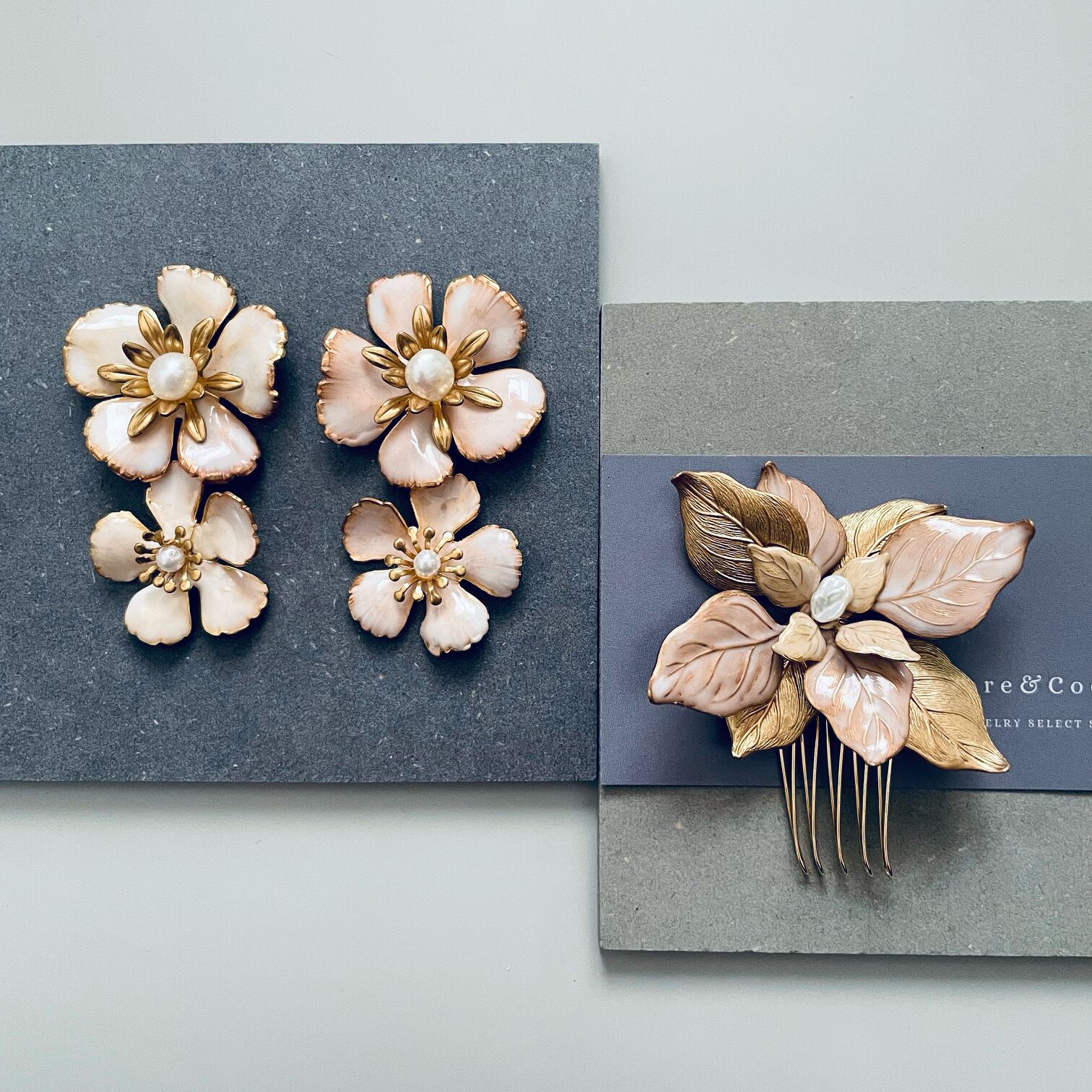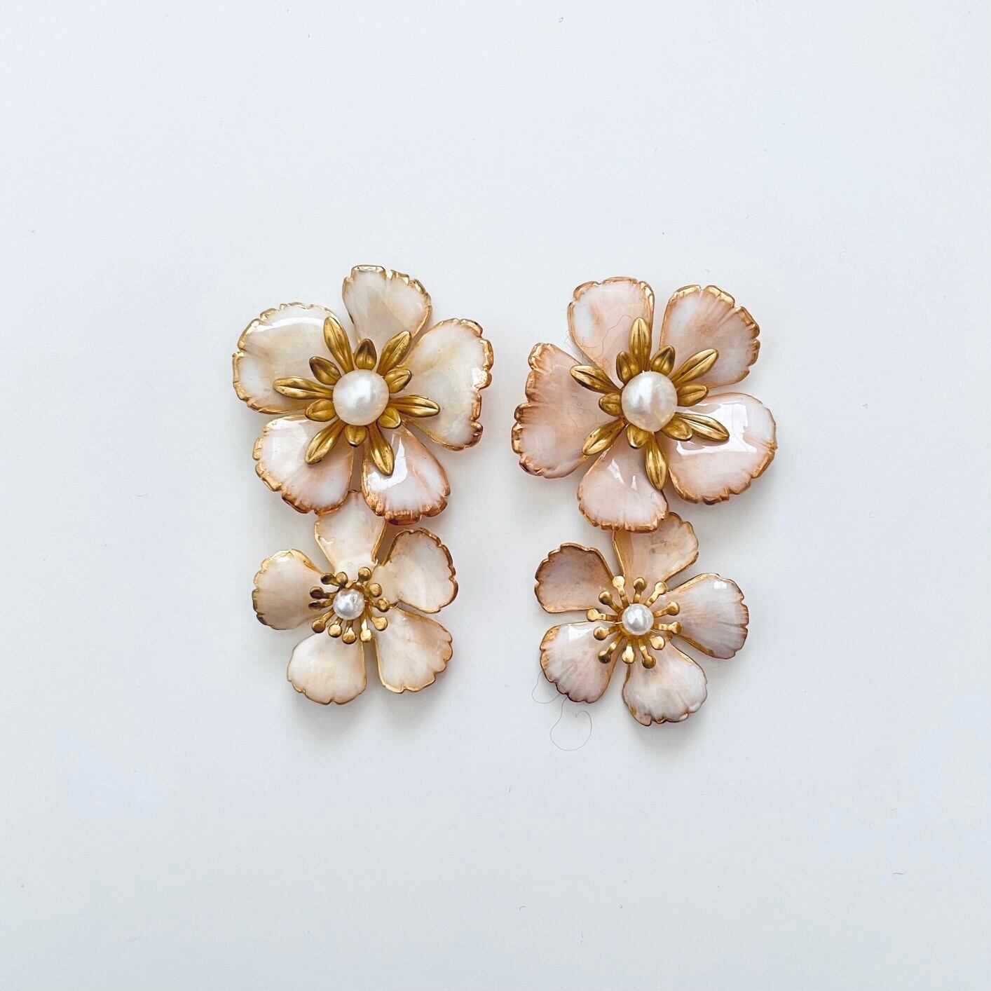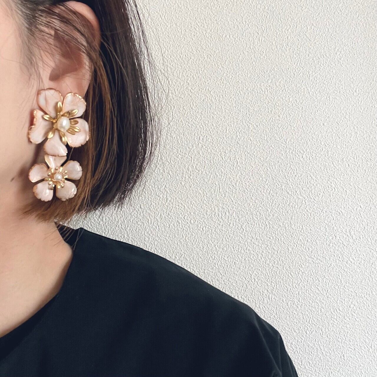 耳元に華やかな彩りを添える、フラワーモチーフの耳飾り。