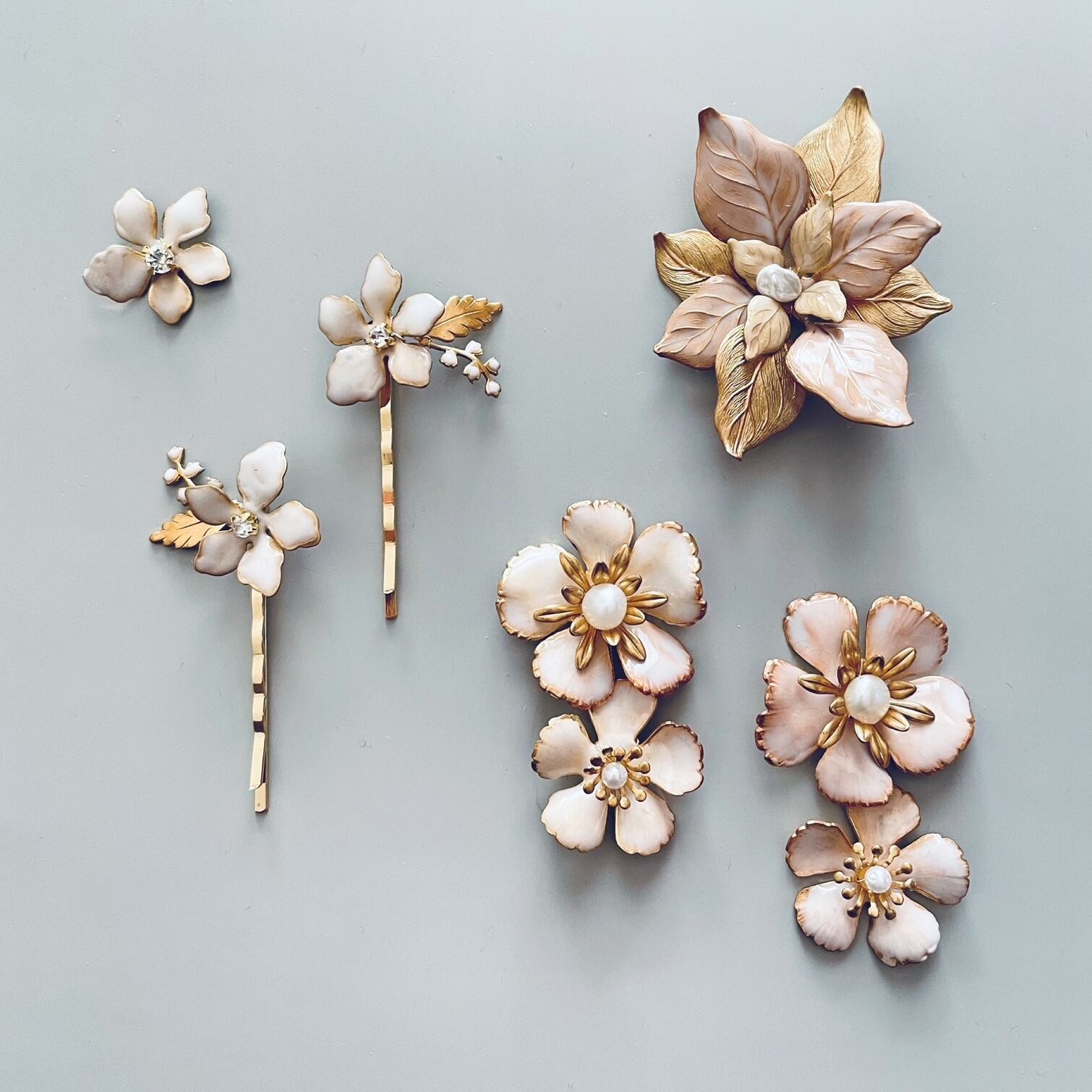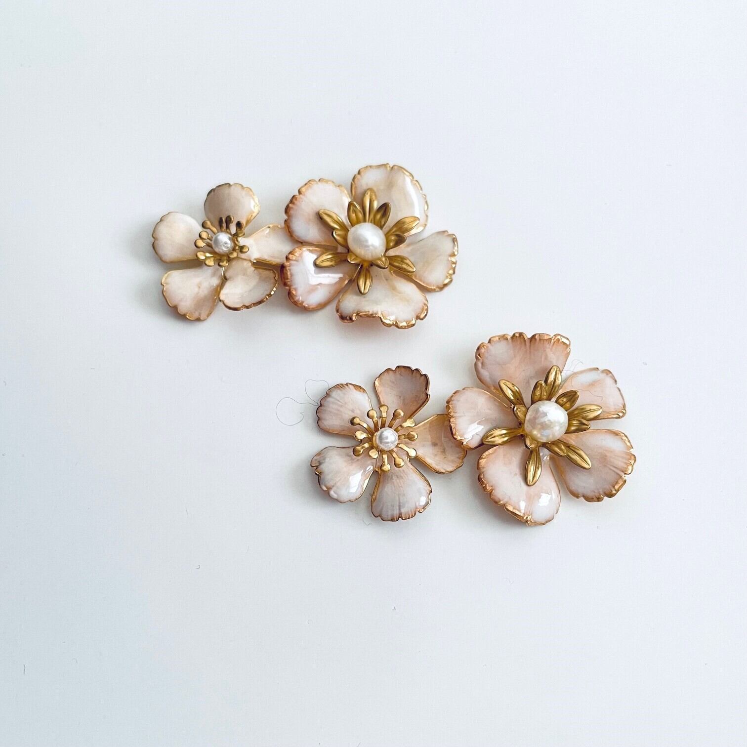 大ぶりのお花が耳元で華やかに咲き誇り、特別な日のパーティーシーンやウエディングにふさわしい逸品です。