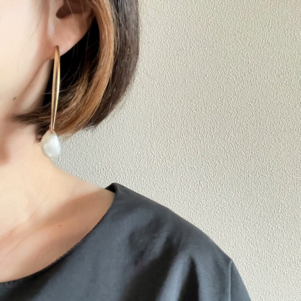スリムなラインと対照的なぽってりとしたドロップコインのパールが美しいバランスを作り出し、