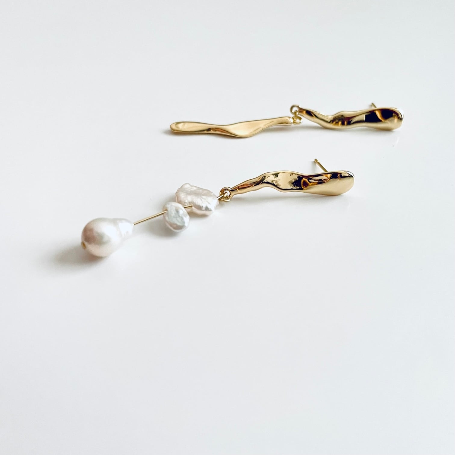 遊び心を取り入れたアシンメトリーデザインが特徴で、片方はまた形の違ううねりデザインのバーツ、