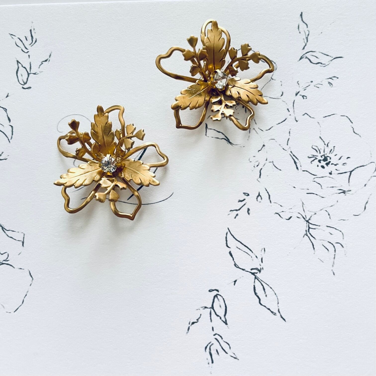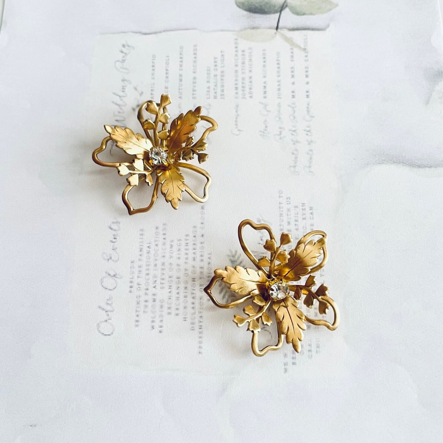 抜け感のあるフラワーと小さな葉っぱの立体感あるデザインが魅力のピアスです。
