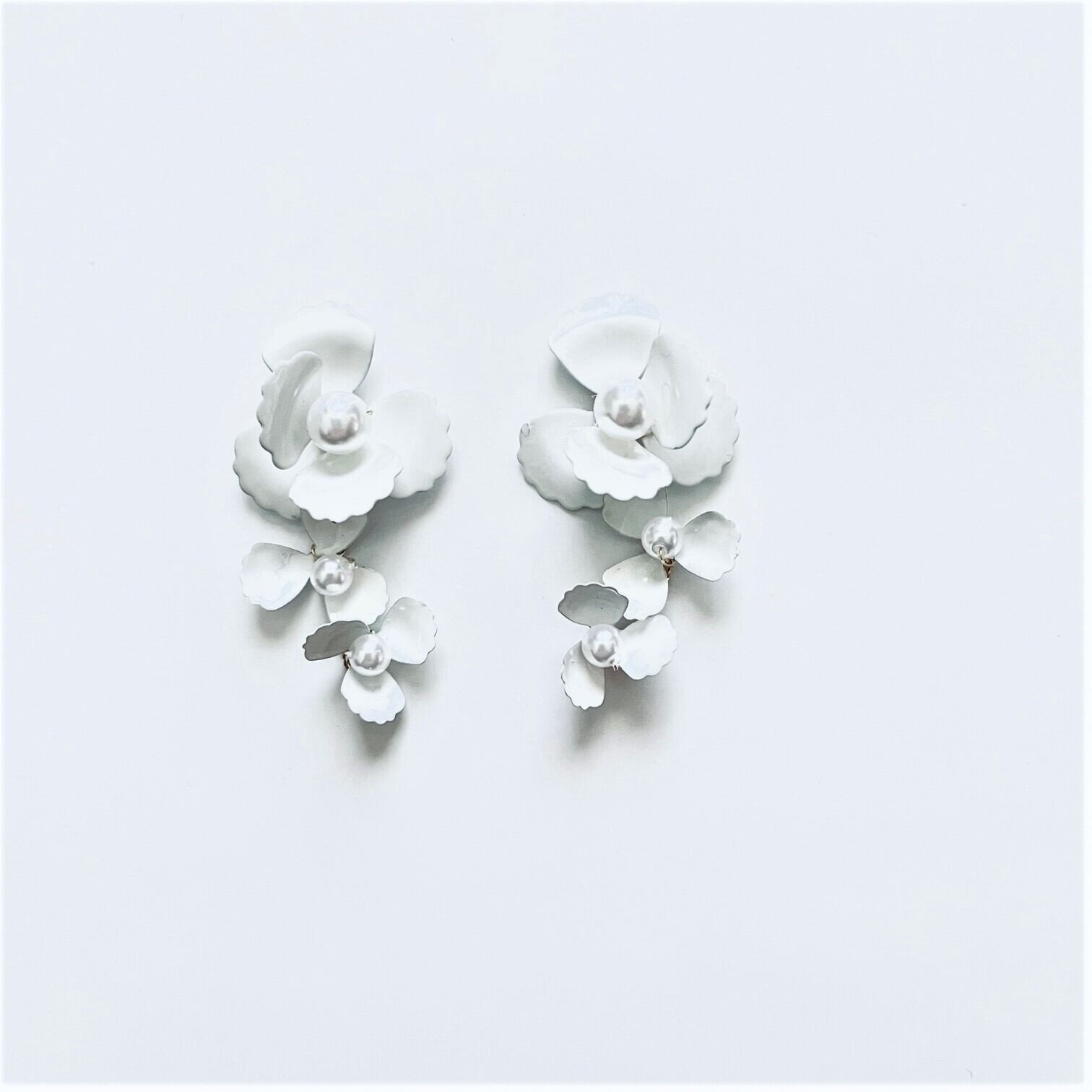 ホワイトエナメル加工を施したフラワーデザインの耳飾りです。