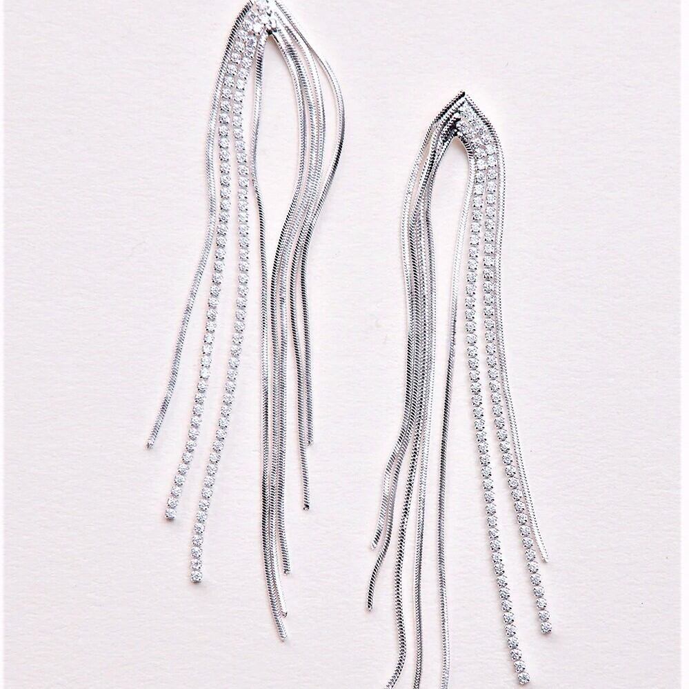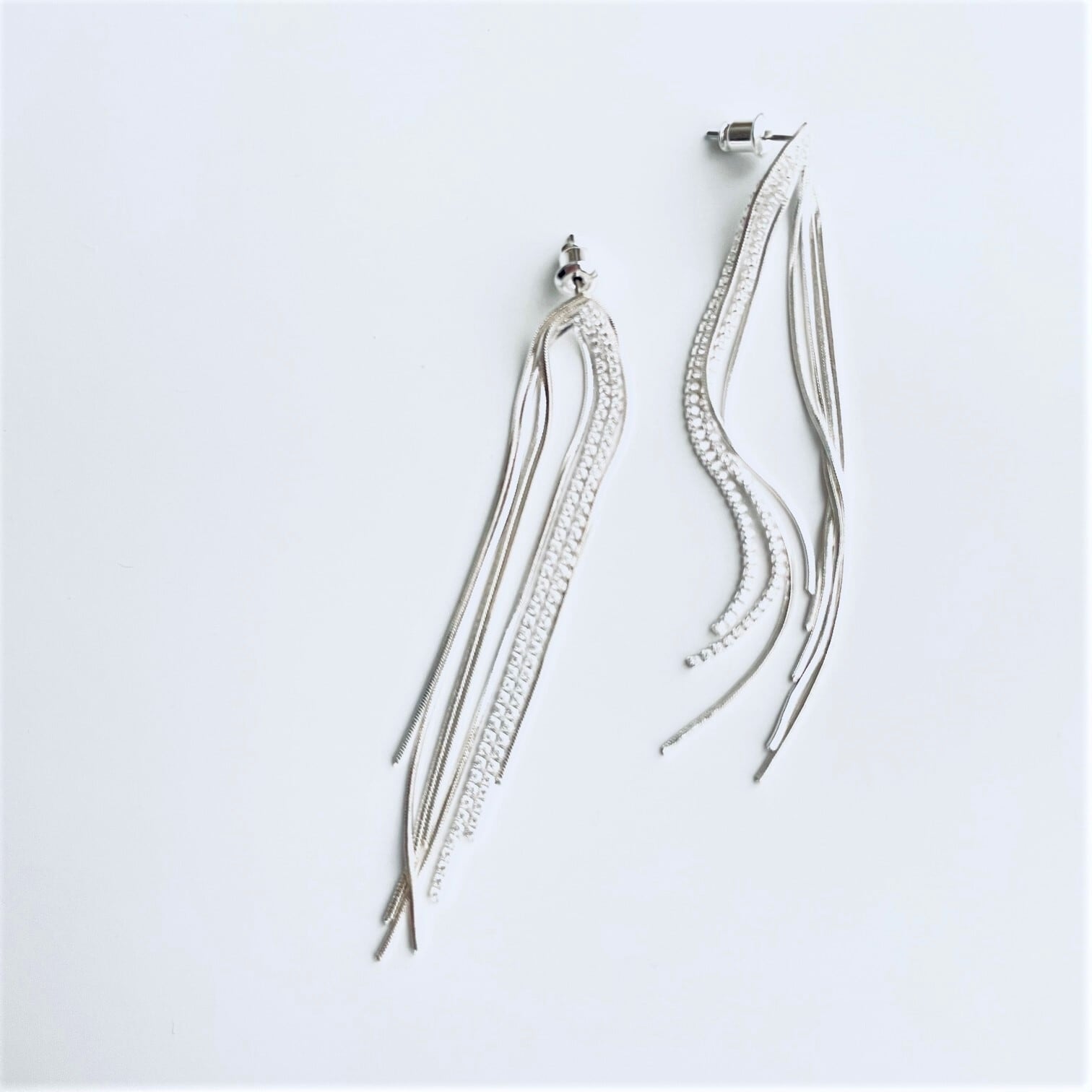 しっとり艶のあるチェーンとキュービックジルコニアを敷き詰めたチェーンをミックスしたロングピアス。