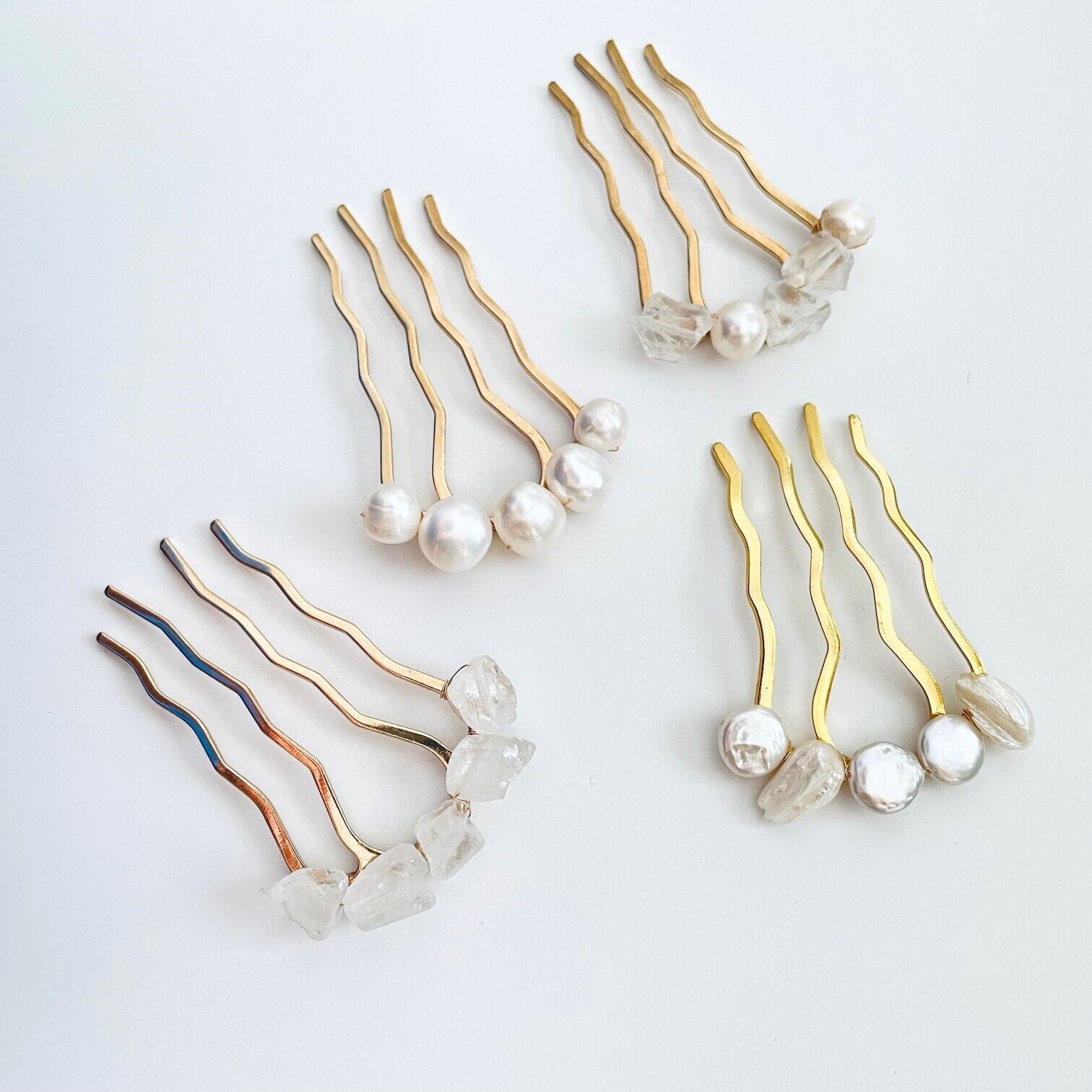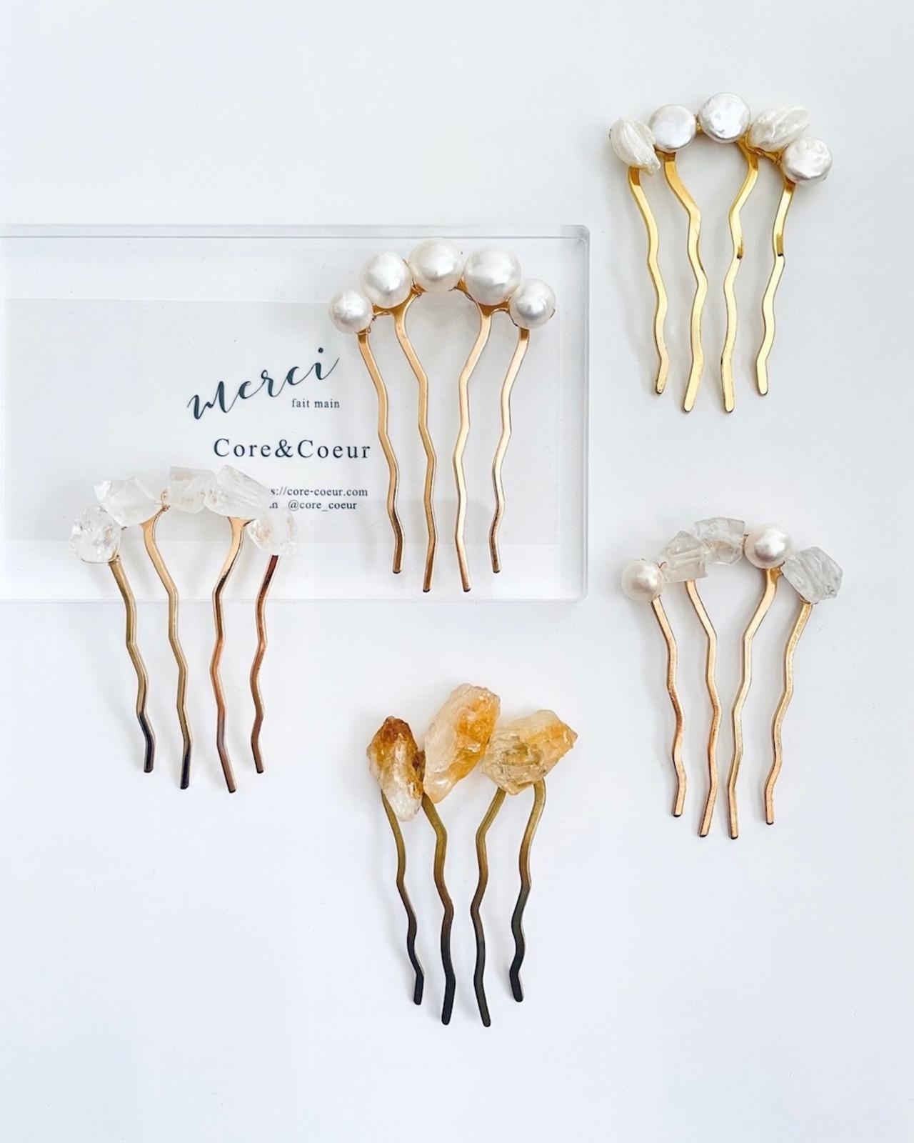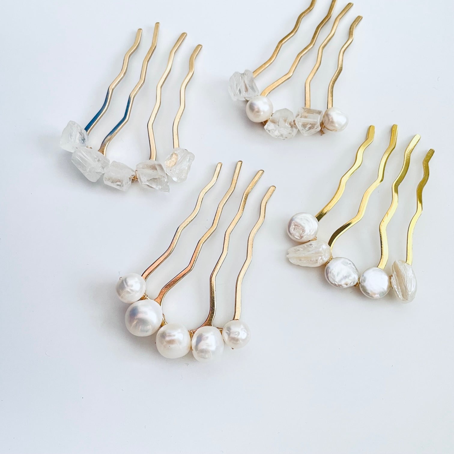 淡水パールやクオーツ(水晶)で4パターンのデザインをご用意。