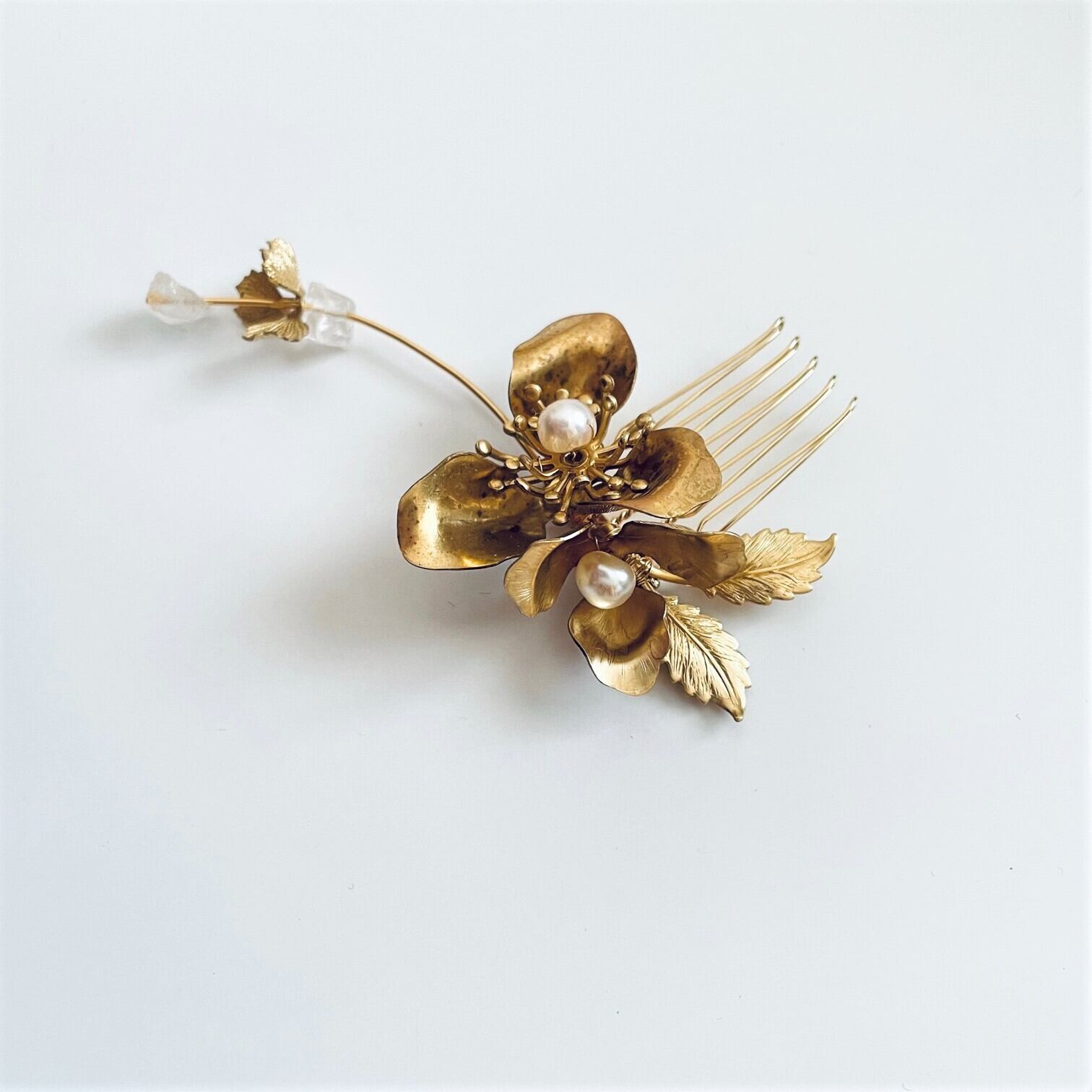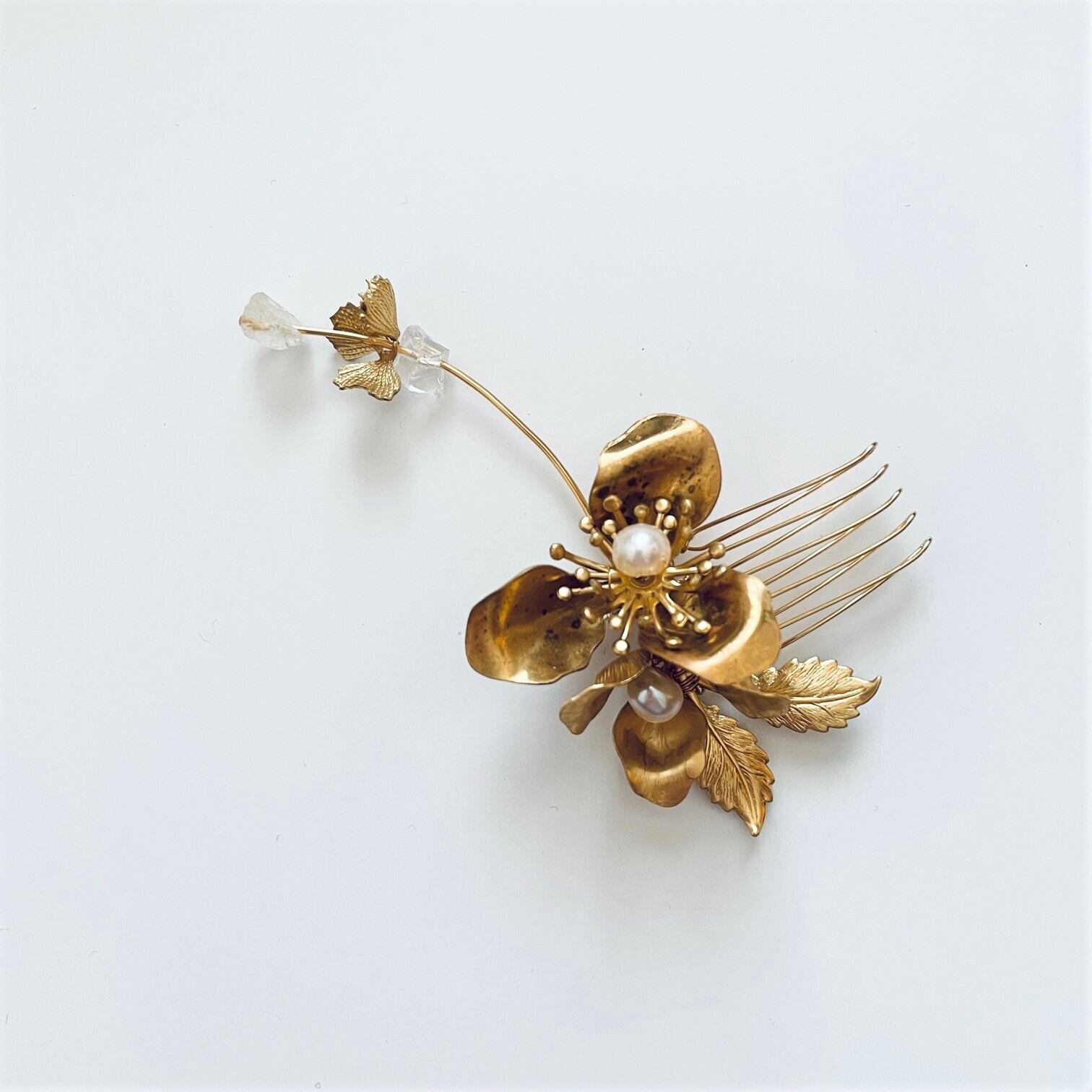 サイズの違うヴィンテージフラワーを組み合わせたコンパクトサイズのヘアコーム。