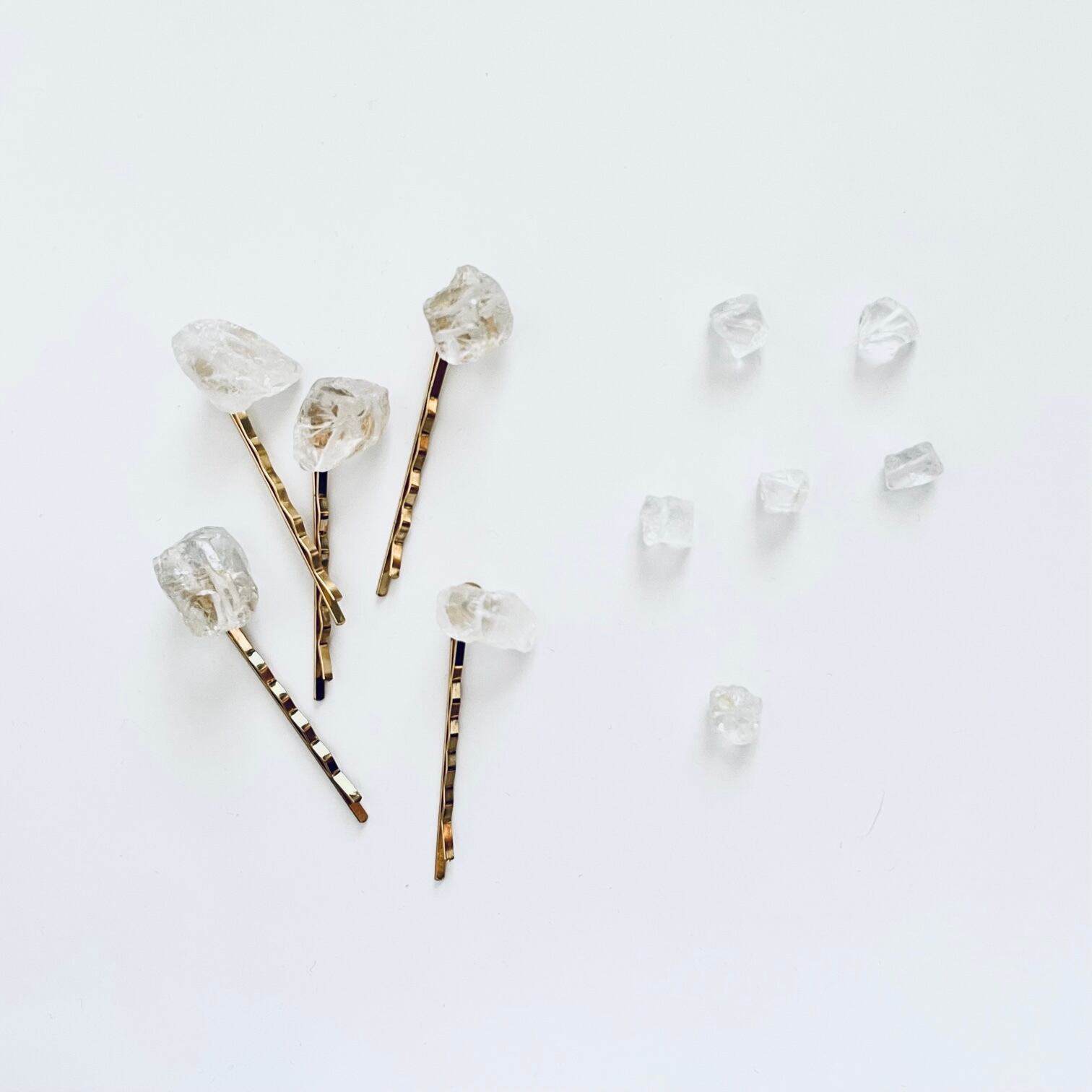 原石の風合いをそのまま楽しめる水晶のヘアピン5本セット。