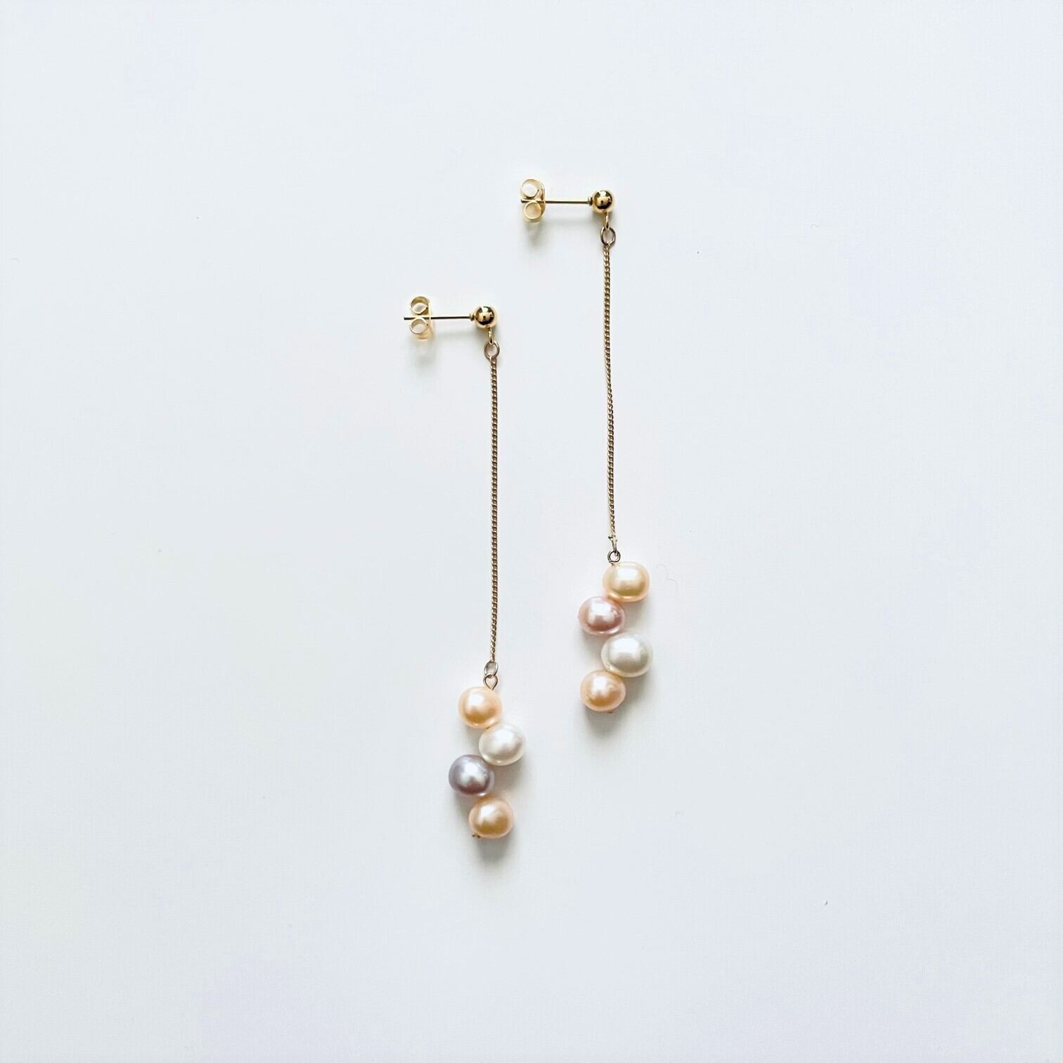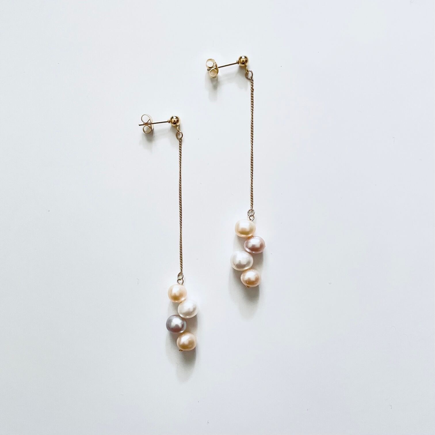 淡いニュアンスカラーパールが揺れる上品なピアスです。