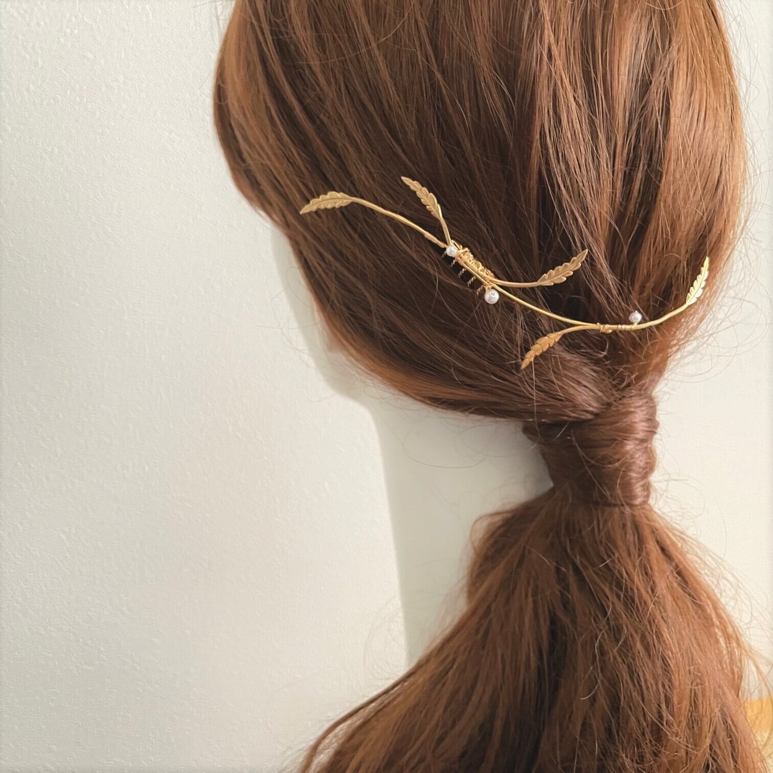カーブラインに小さなリーフをあしらった植物ヘアコーム。