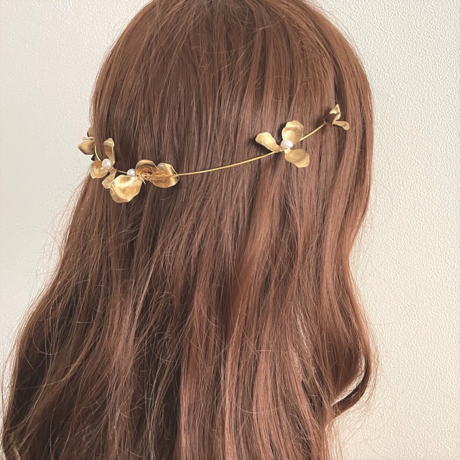 華やかさを演出しながらも細いラインがすっきりした印象に見せてくれるヘアバンドです。