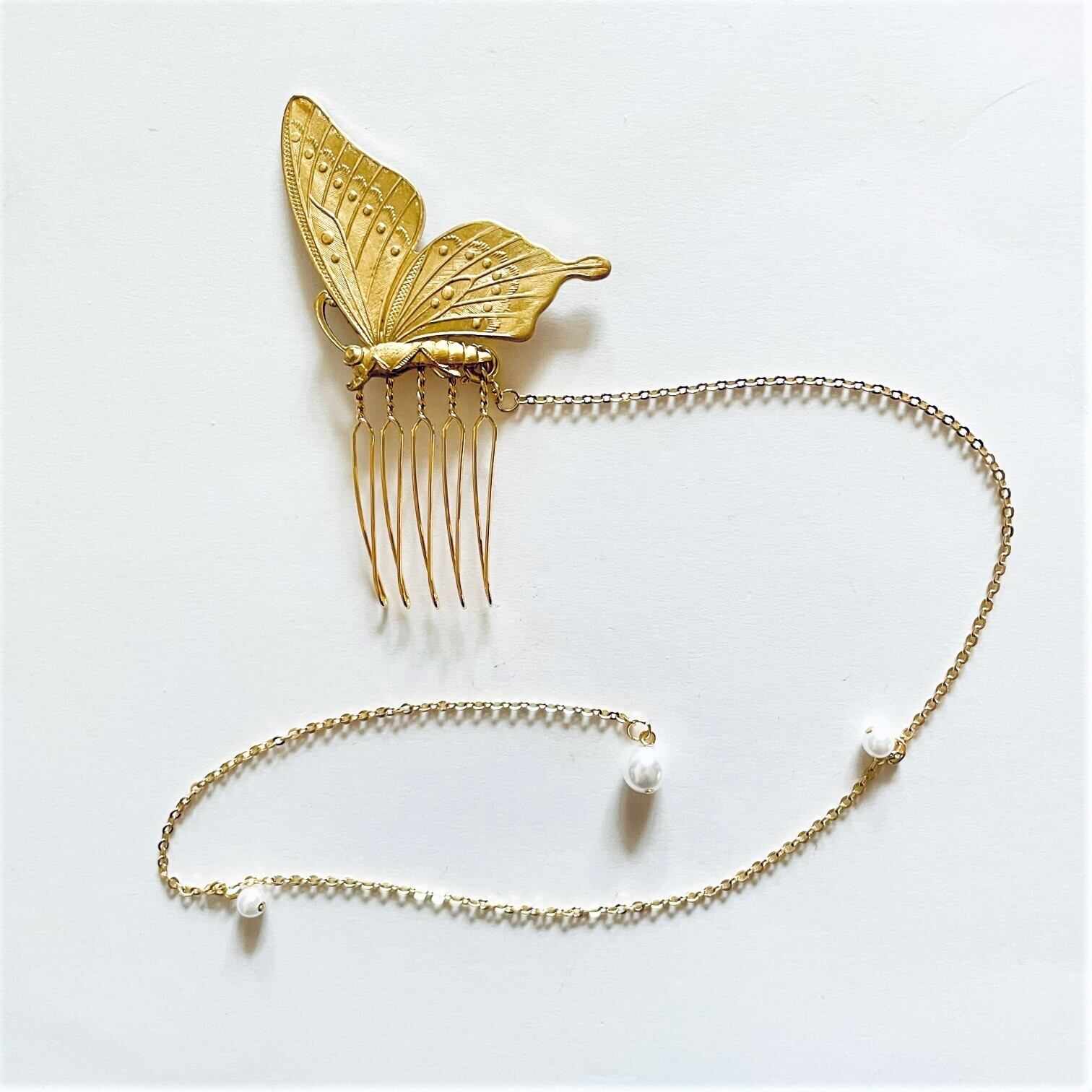 蝶々モチーフがヘアアクセントになるヘアアイテム。