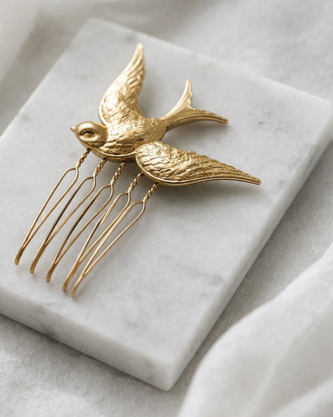 ヴィンテージの鳥のモチーフがアクセントのヘアコーム。