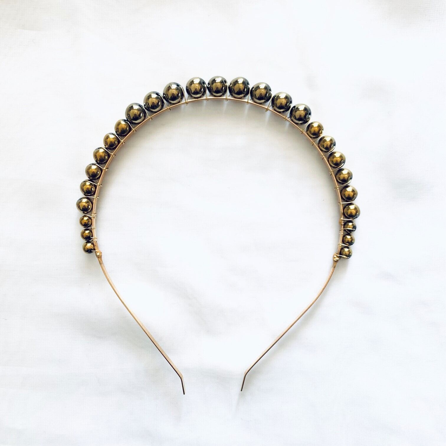 艶やかで深みのあるゴールドビーズが美しいヘアバンド。