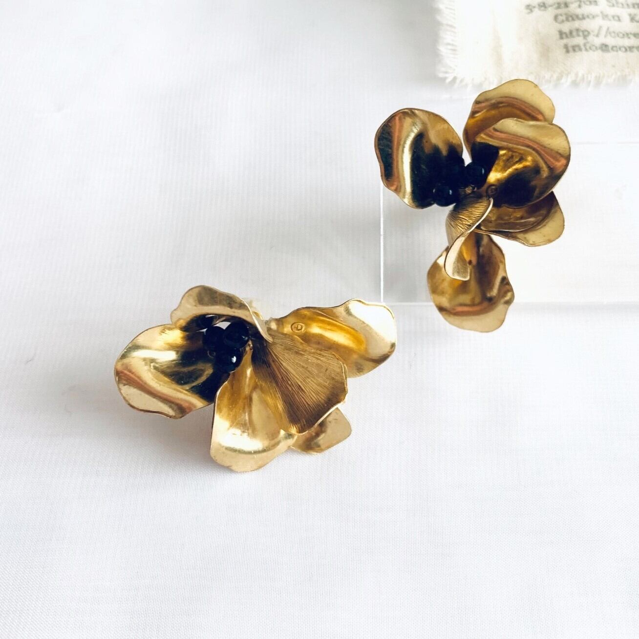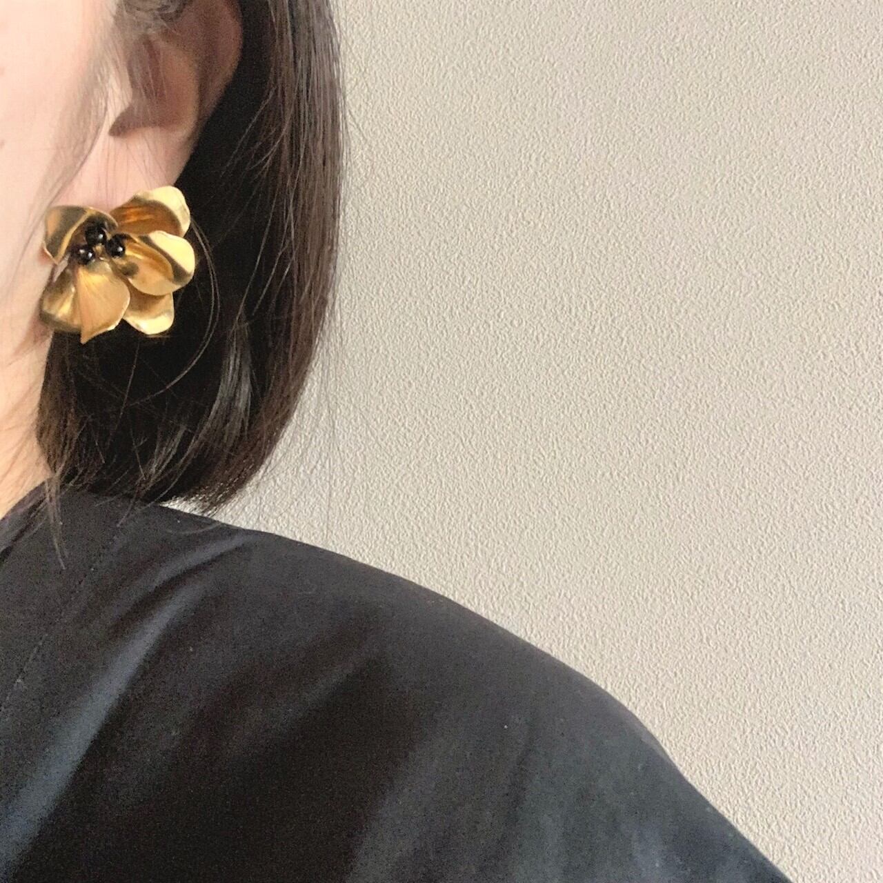 ヴィンテージのフラワーを組み合わせたデザインが特徴の魅力的な耳飾りです。