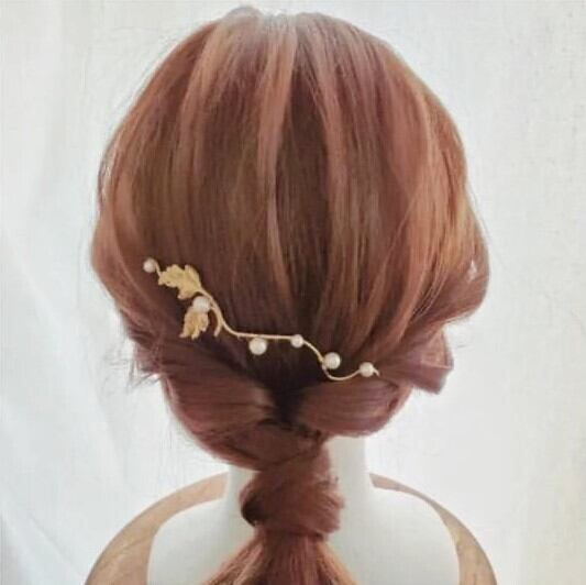 シンプルにリーフモチーフを1つ、サイズの異なるパールを散りばめて洗練さと華やかさを併せ持つデザインに。