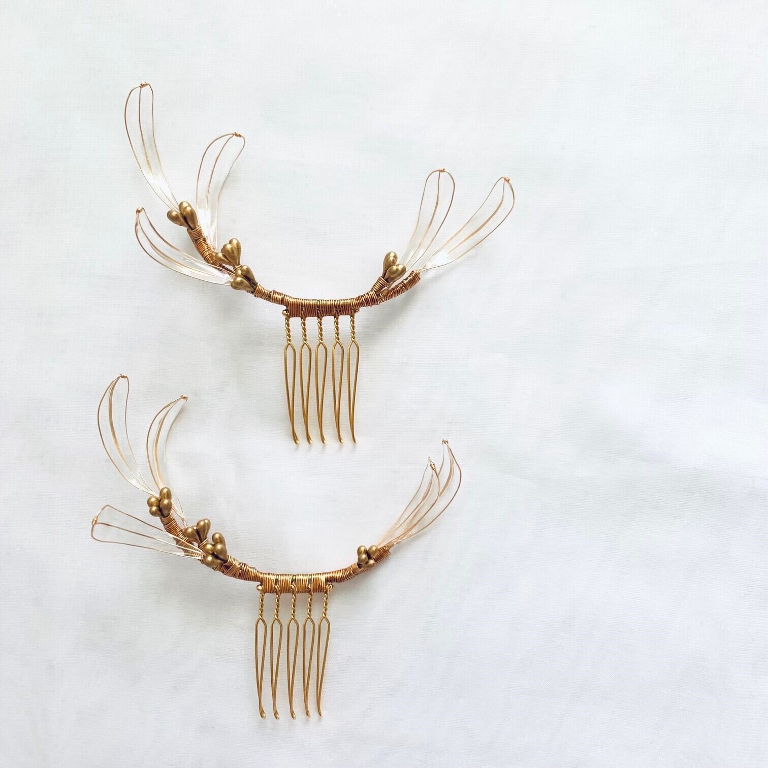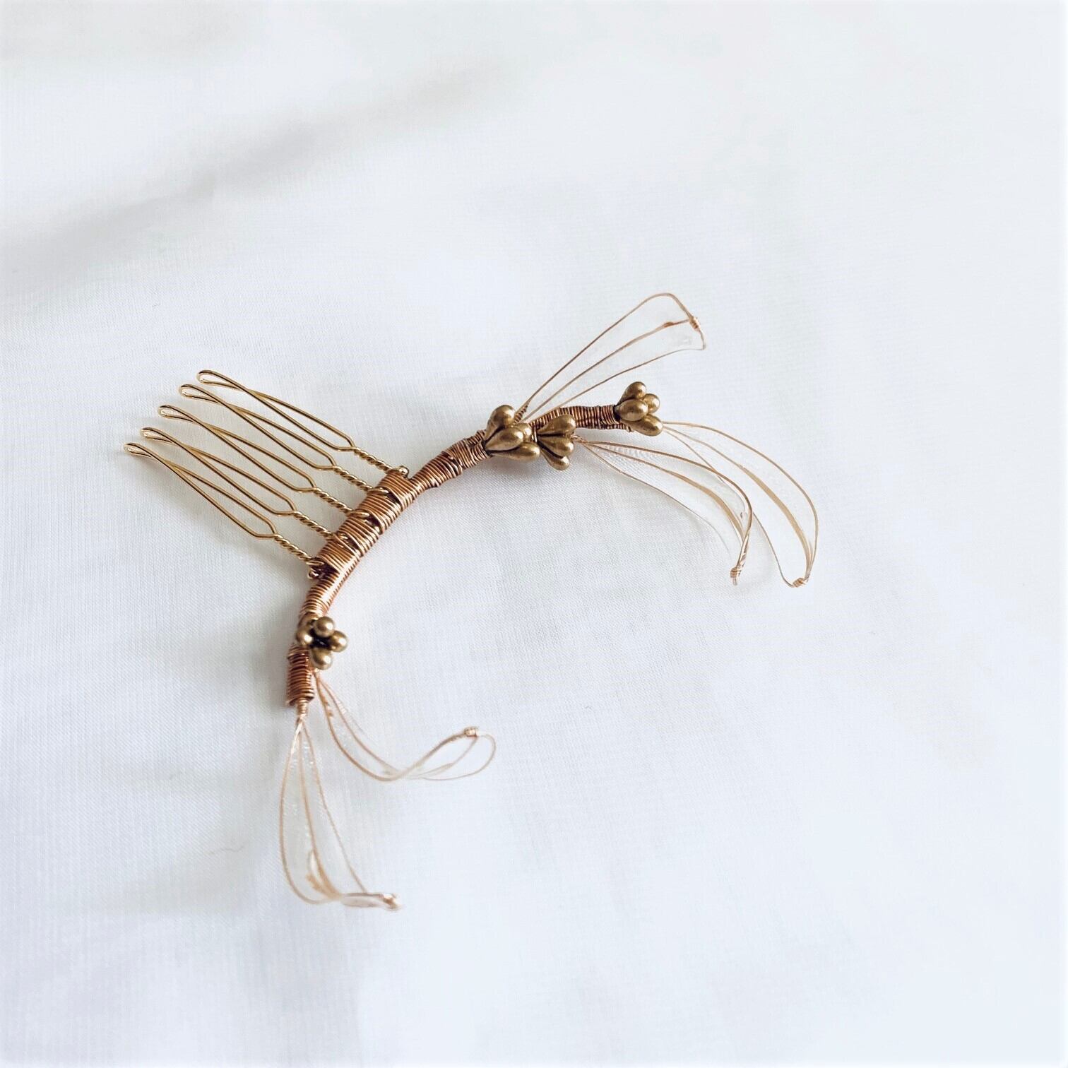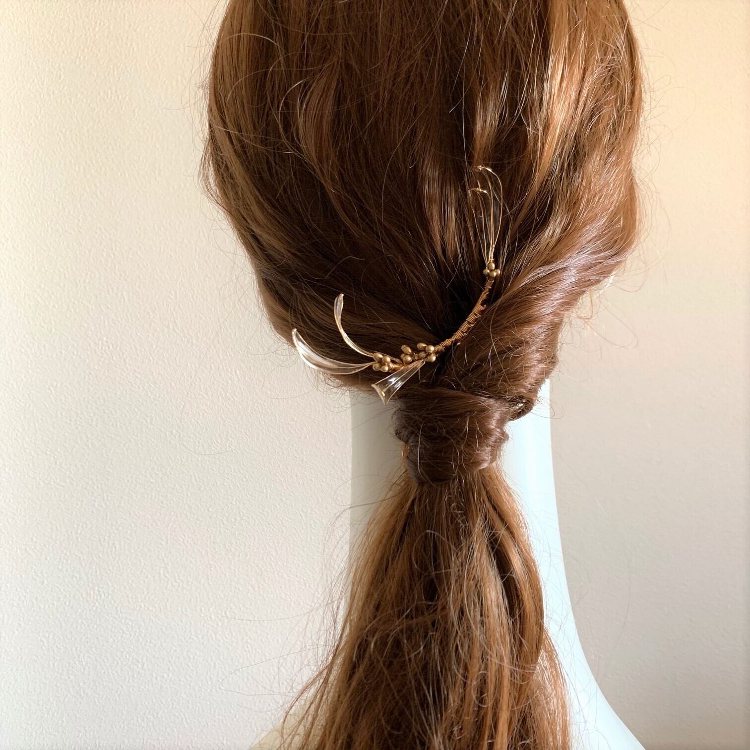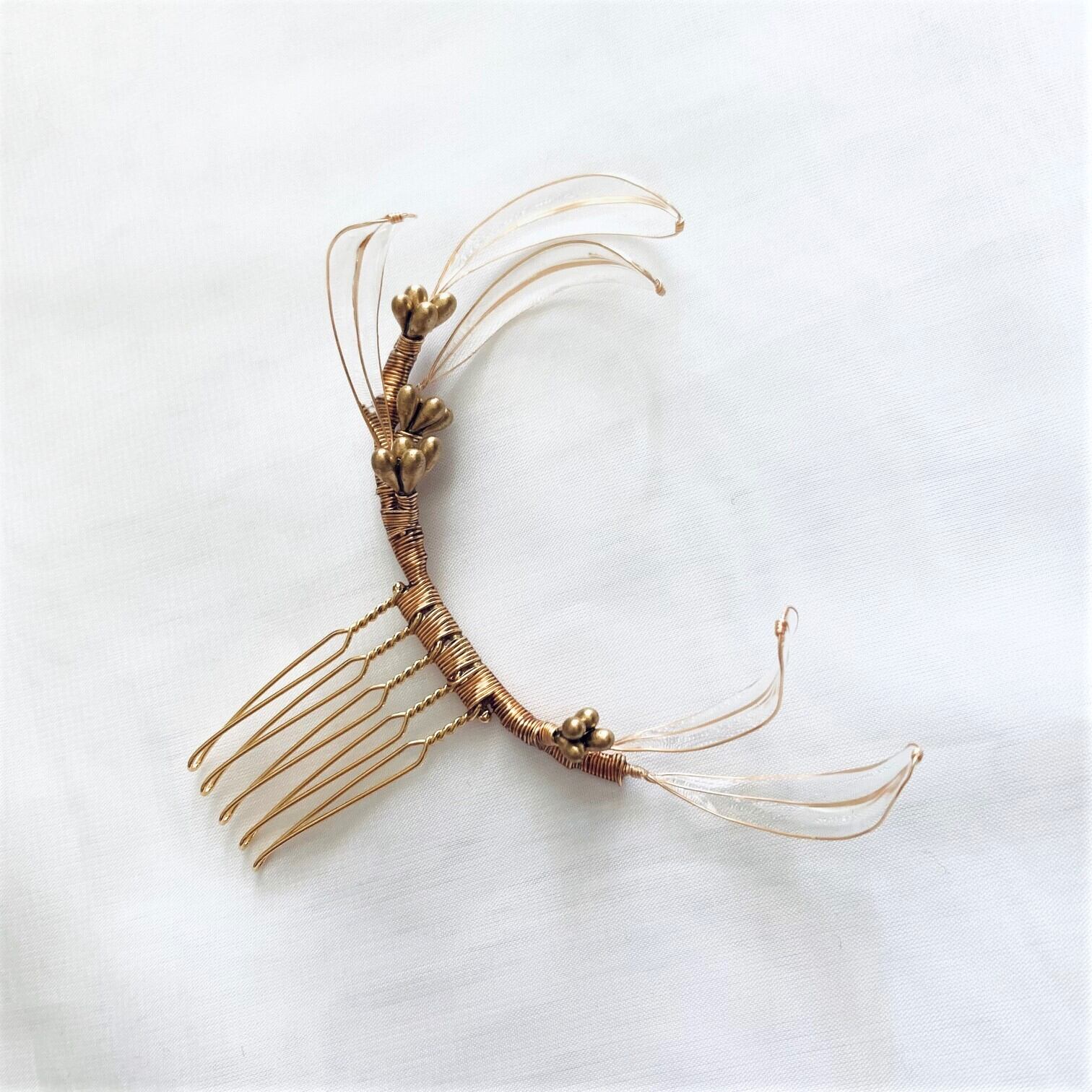 細いワイヤーと樹脂でリーフをイメージしてデザインしたヘアコームです。