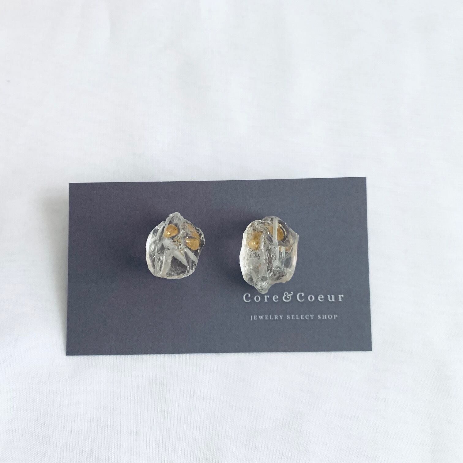 自然が生み出した形状を活かしたラフカット水晶の耳飾り。