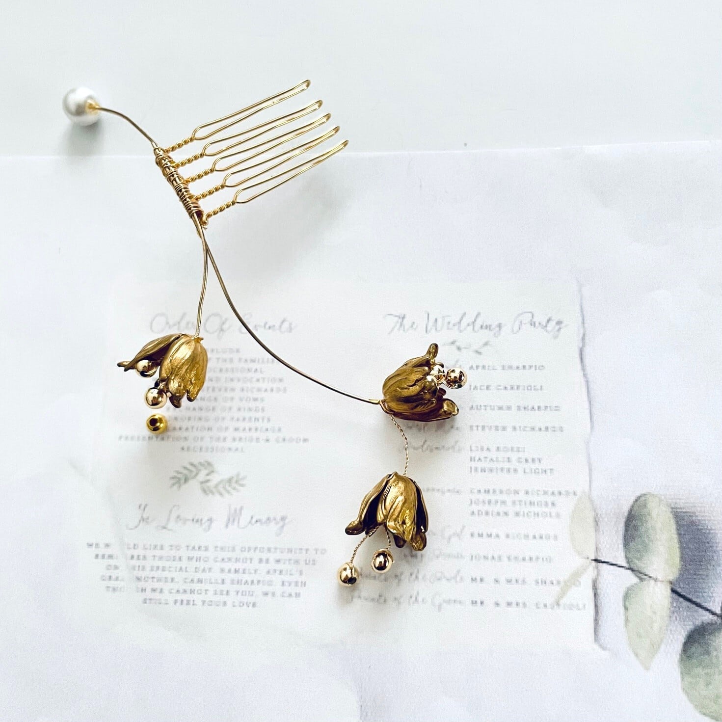 つたから伸びるゆっくりと花開く前のつぼみをイメージしたヘアコーム。