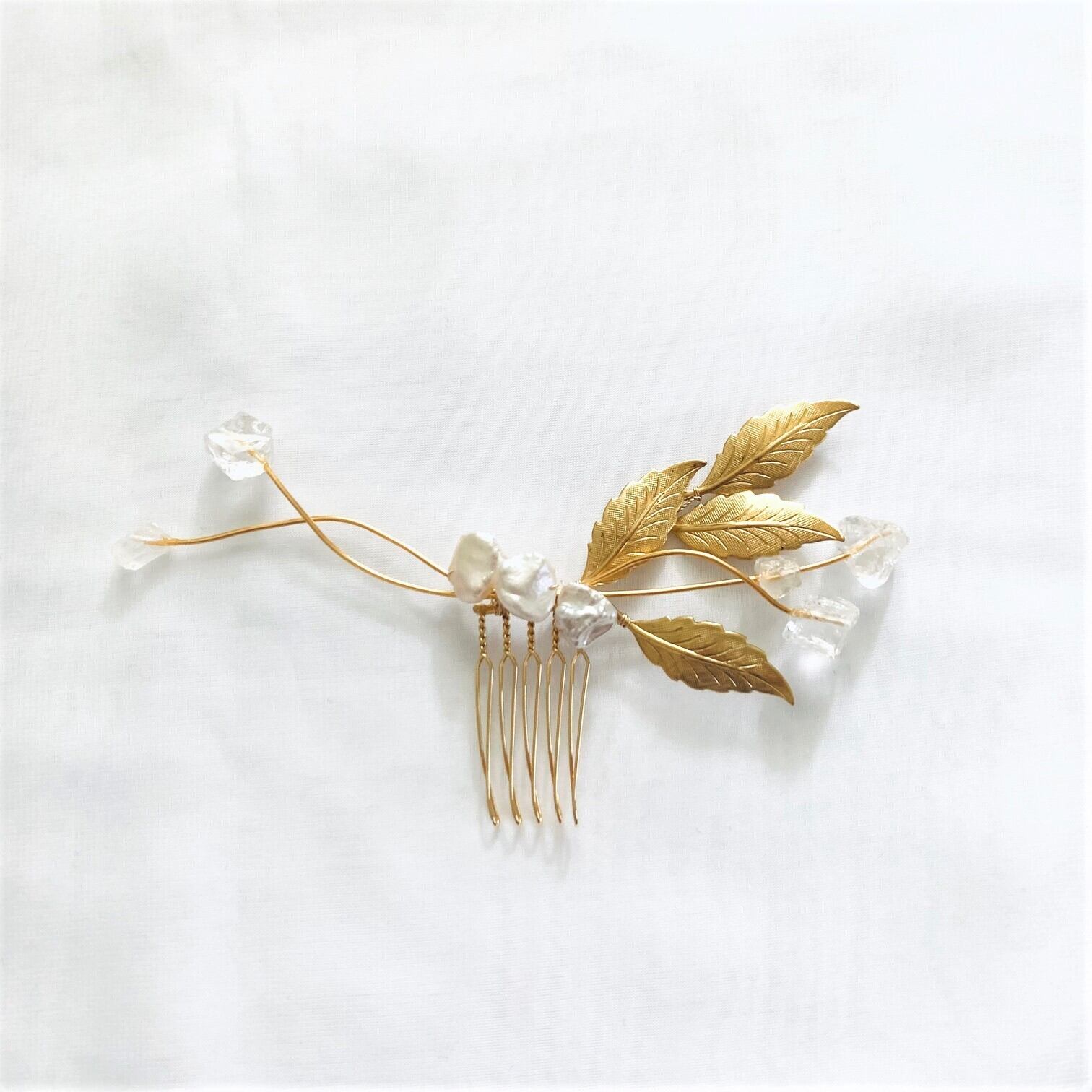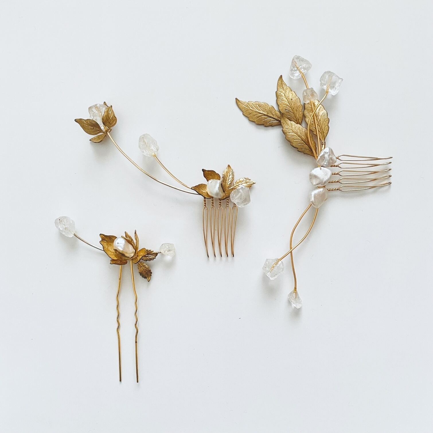 さらに、天然石のクオーツが透明感をプラスして、ヘアアレンジに輝きを与えてくれます。